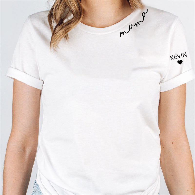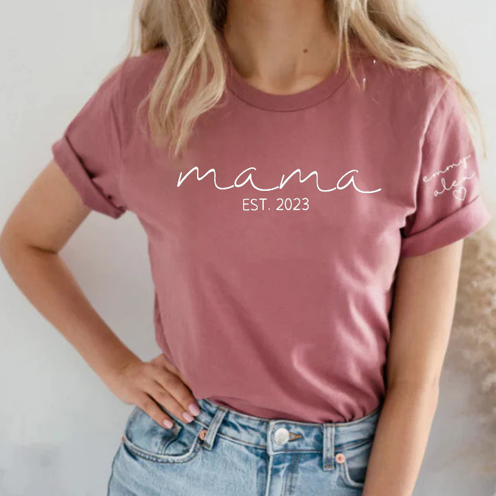 Personalised Customization Mama Est Year T-shirt, with Children's Names on the Sleeve, Mother's Day Gift