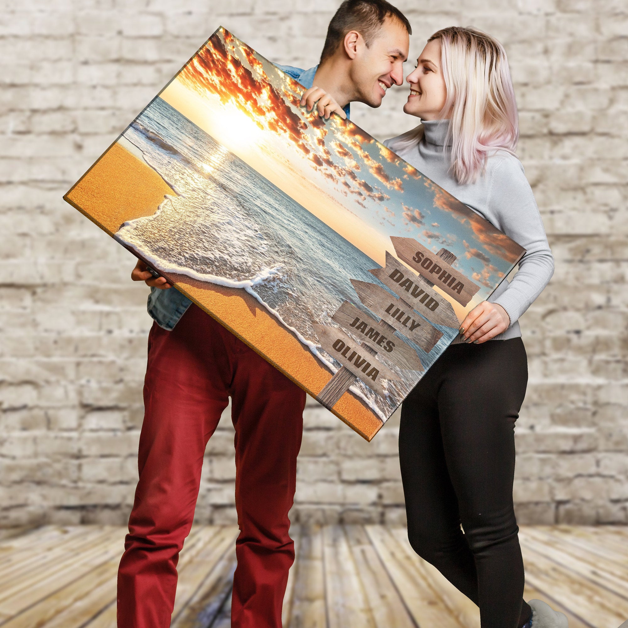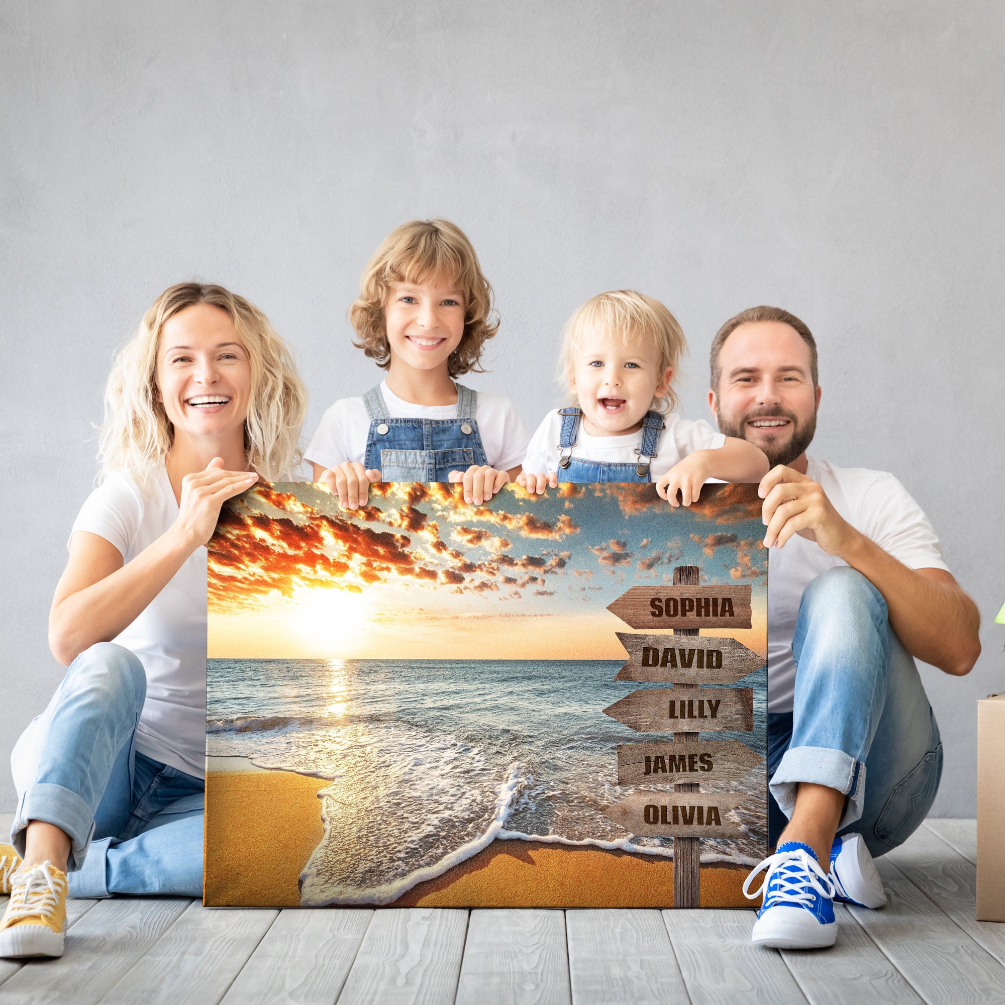 Beach Sunrise Customized Canvas For Father's day, Family Wall Décor, Gift Ideas For Anniversary,Birthday, Father's day,Mother's day, Street Sign Canvas, Personalized Canvas