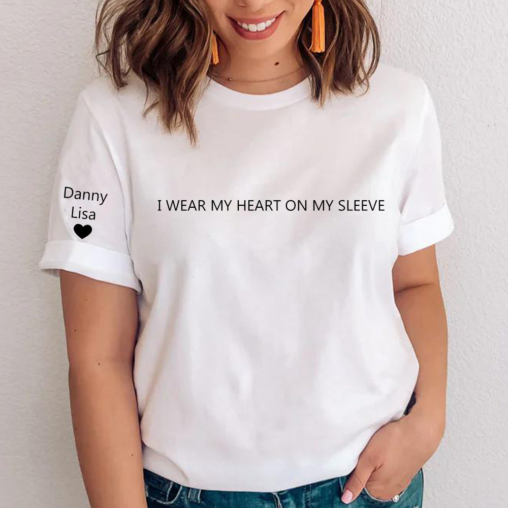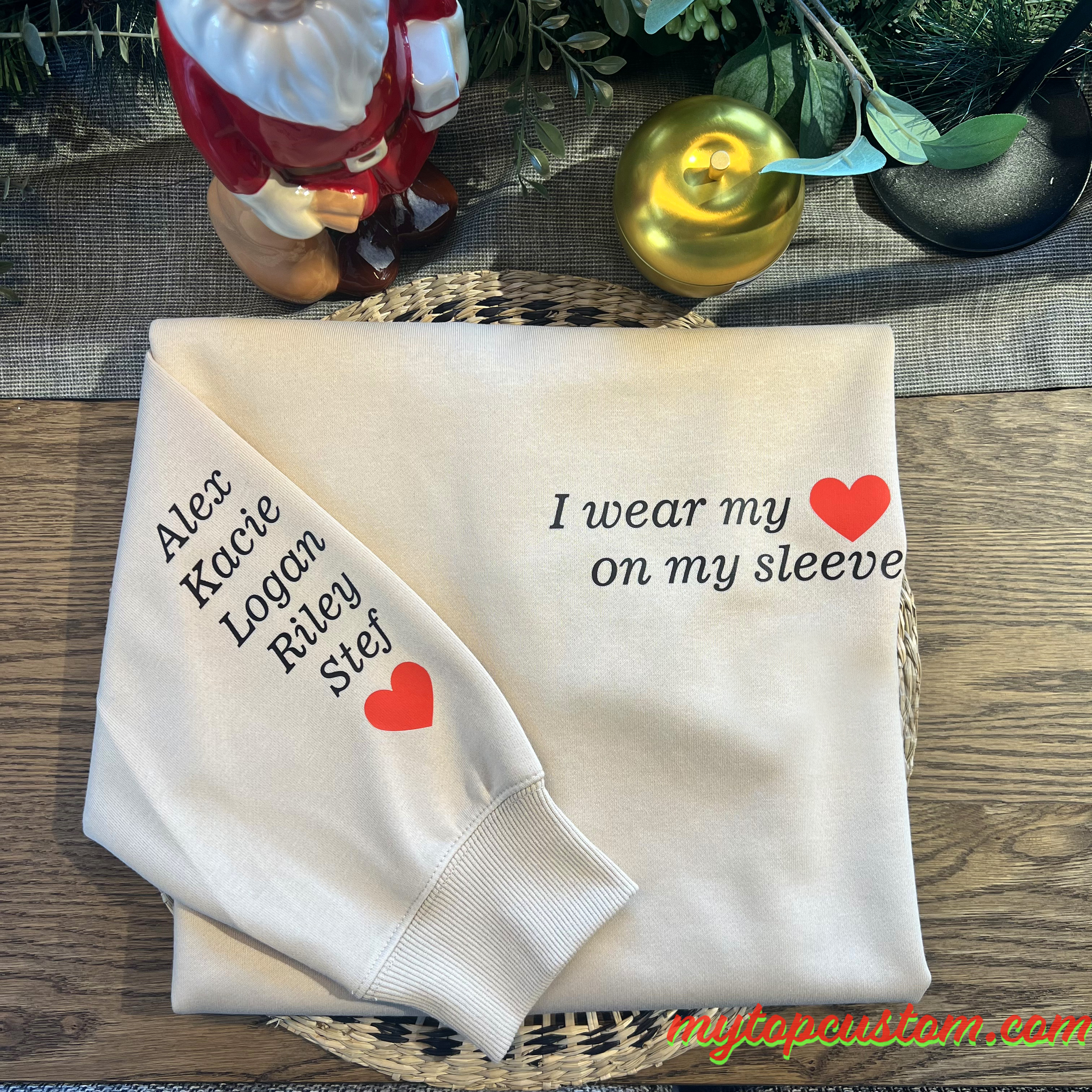 I Wear My Heart On My Sleeve Personalized Names For Mom/Couples/Yourself