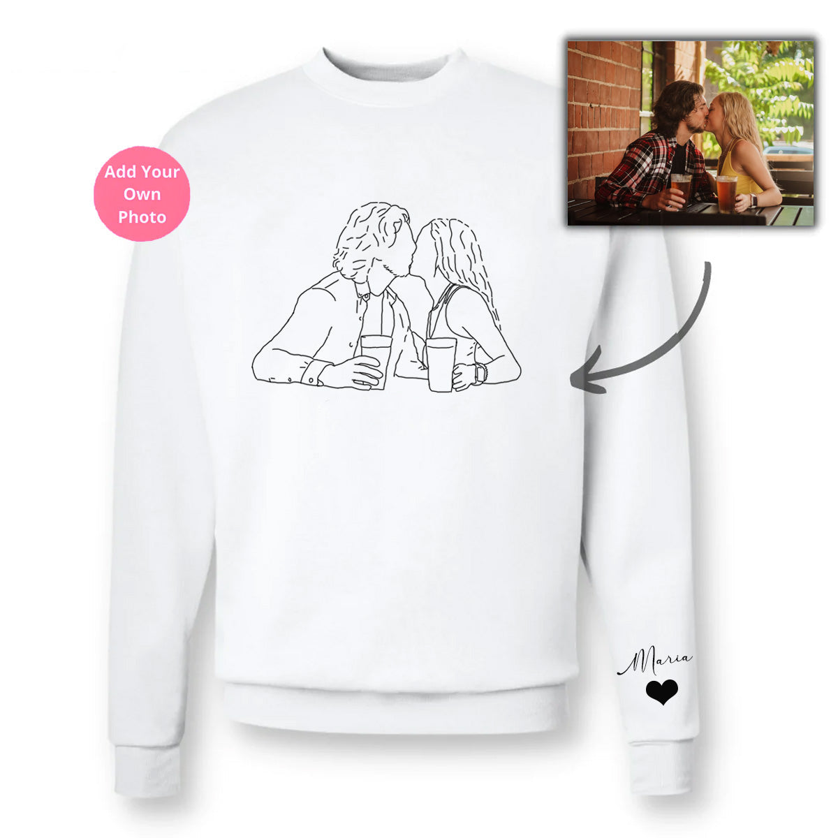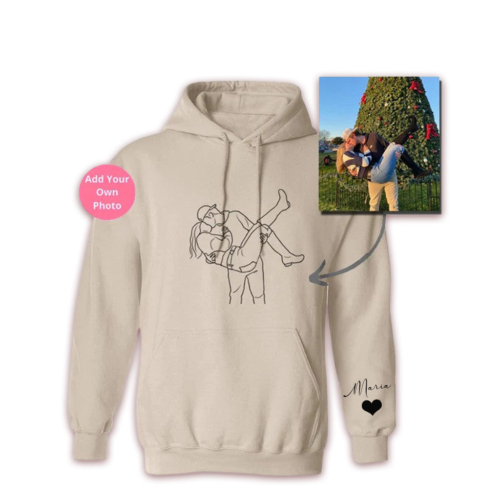 Personalized Photo Line Drawing Hoodie Shirt for Couple, Parents, Friends Gifts.