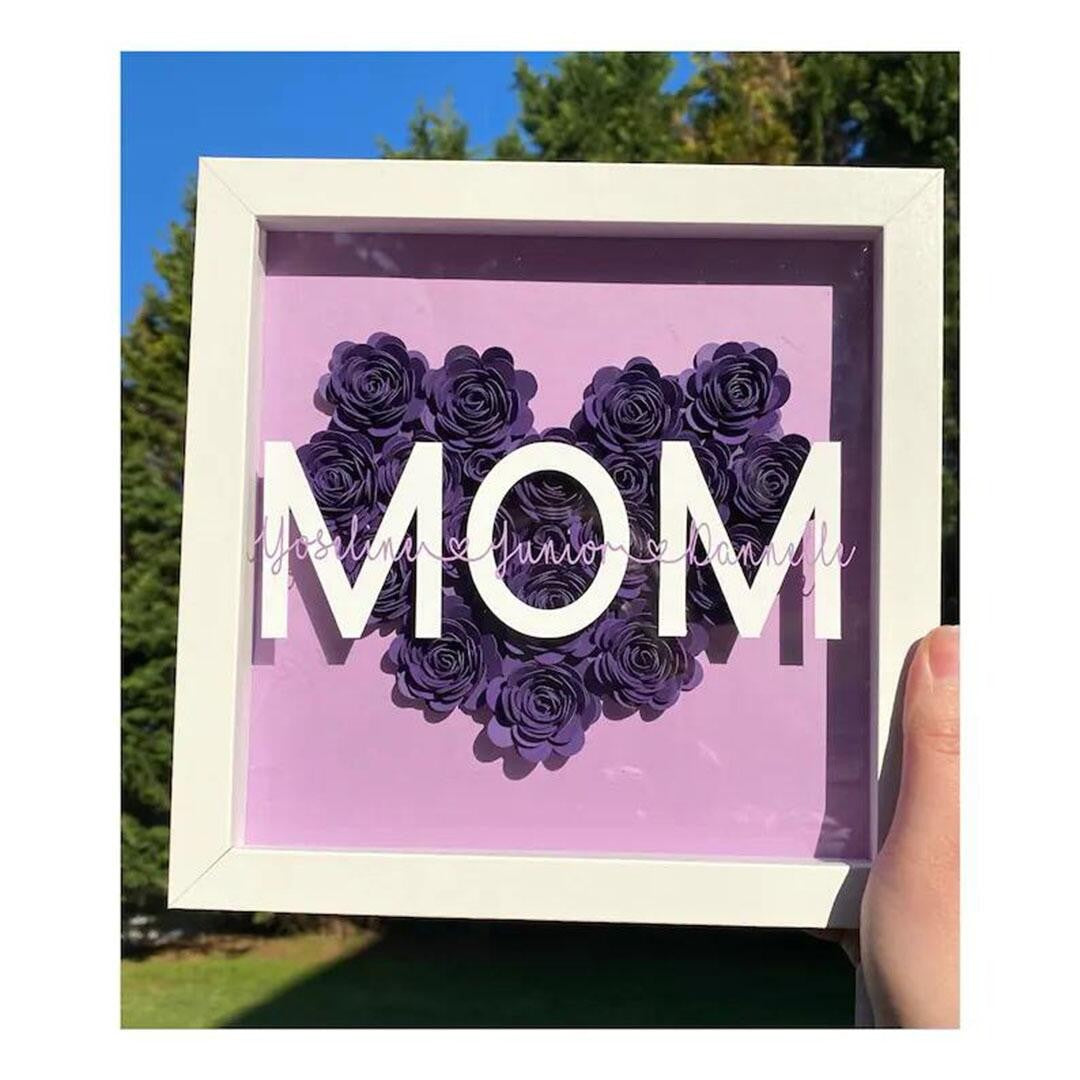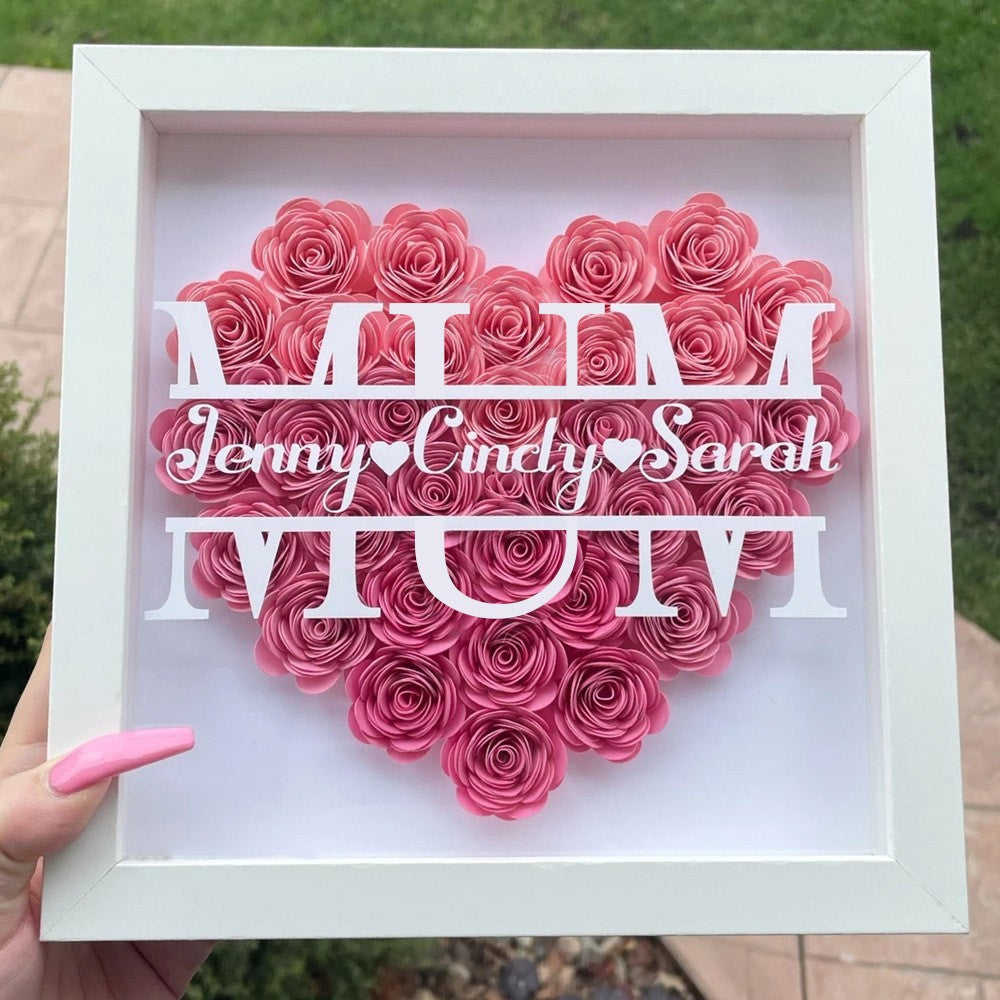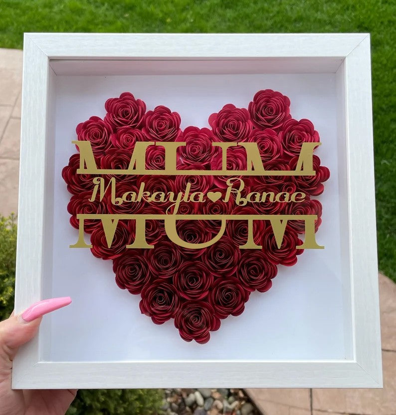 Mum Heart Shaped Monogram Flower Shadow Box Gift For Mothers