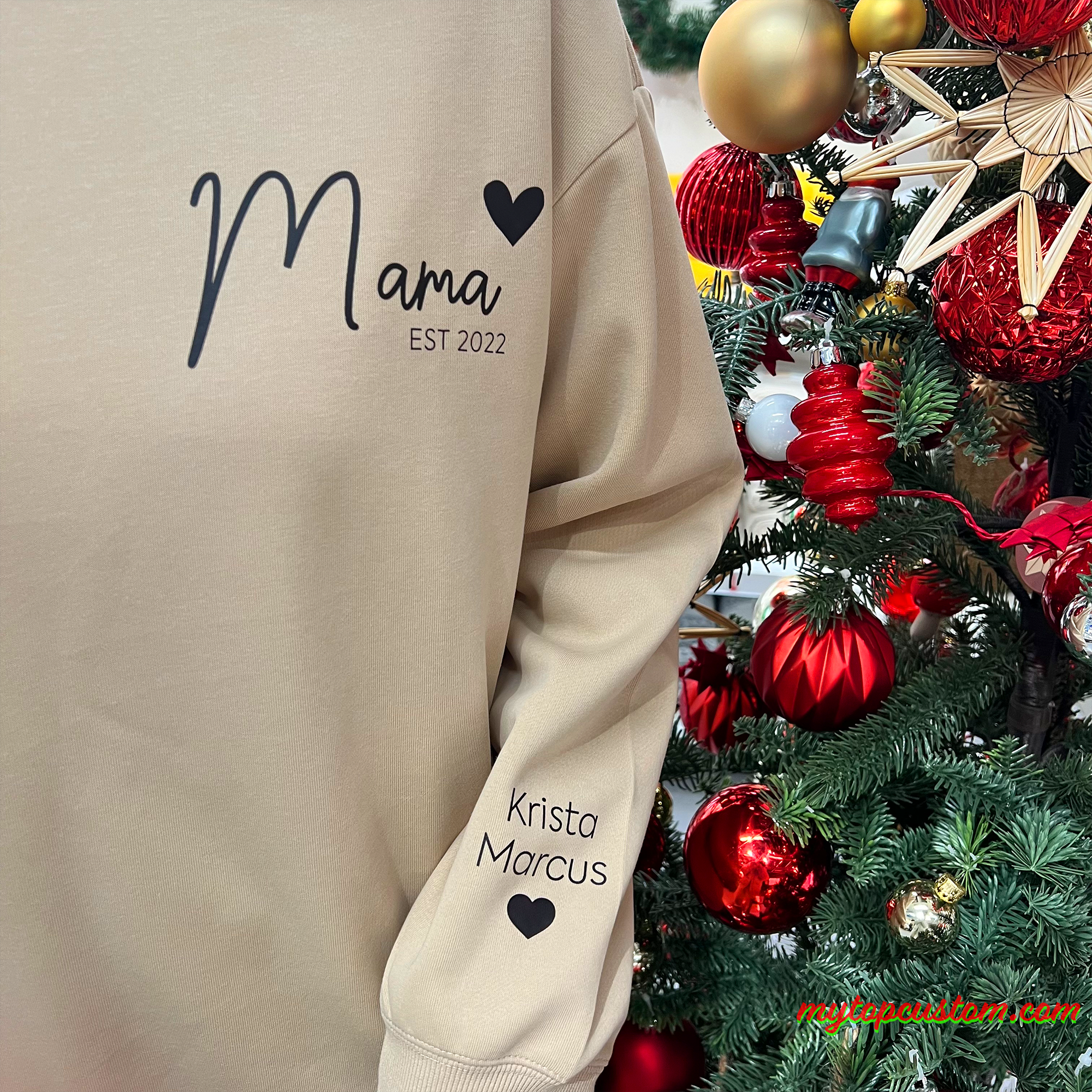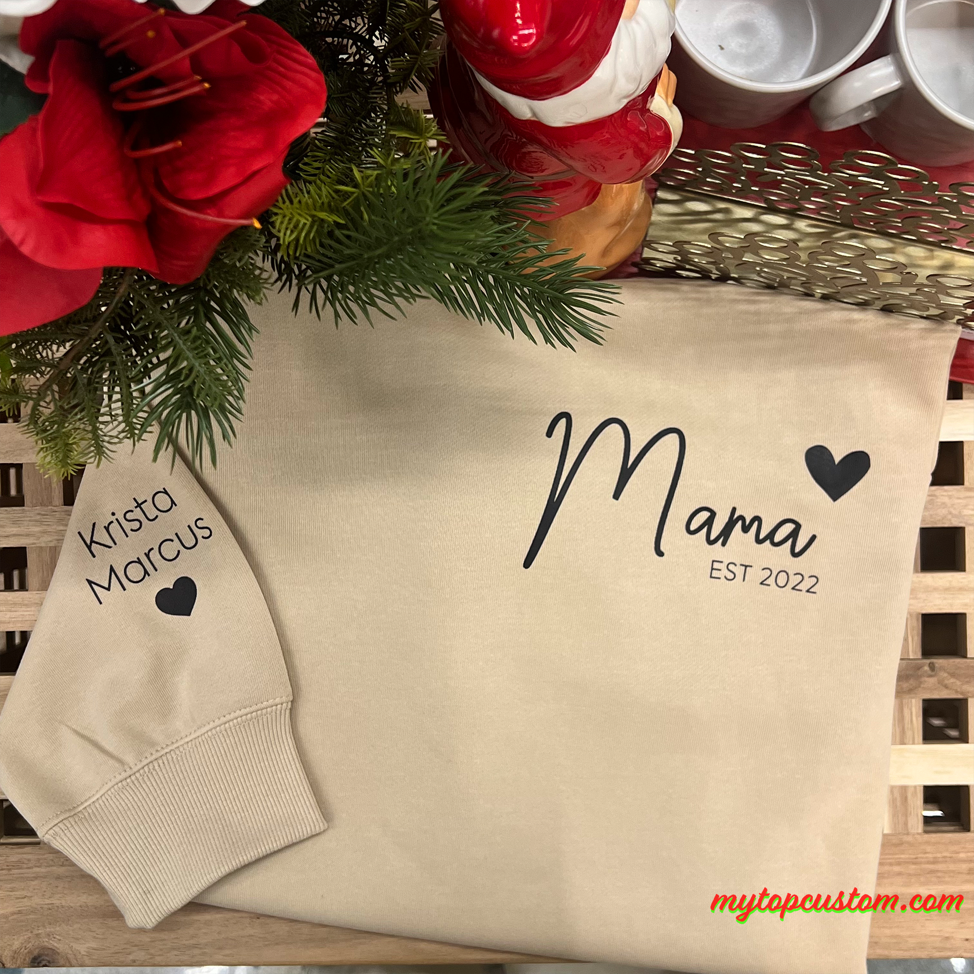 Personalized Mama Est Sweatshirt with Child's Name on Sleeve,Mothers Day Gift,New Mom Gift