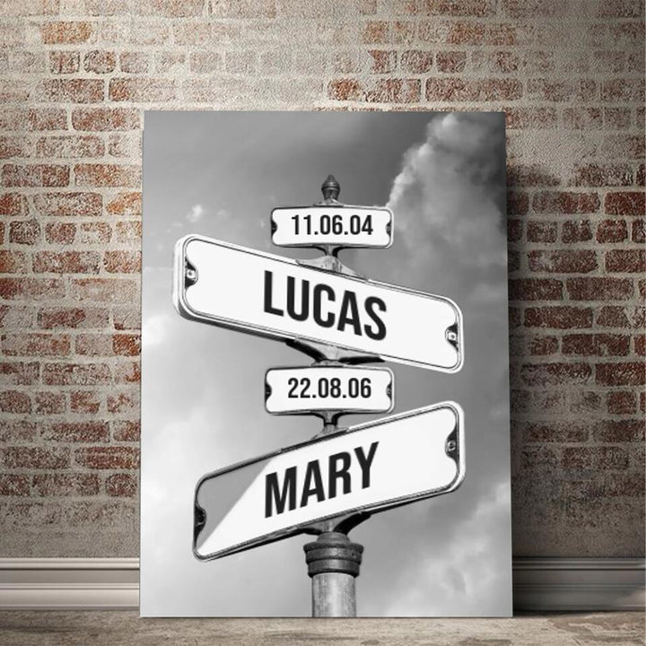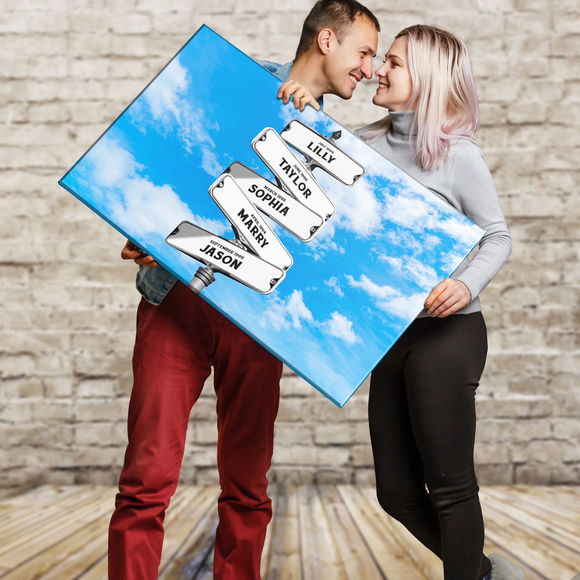 Customized Gift For Father's Day, Family Wall Decor, Gift Ideas For Father's Day,Mother's day,Anniversary, Birthday, Wedding, Street Sign Canvas, Sky View Personalized Wall Art