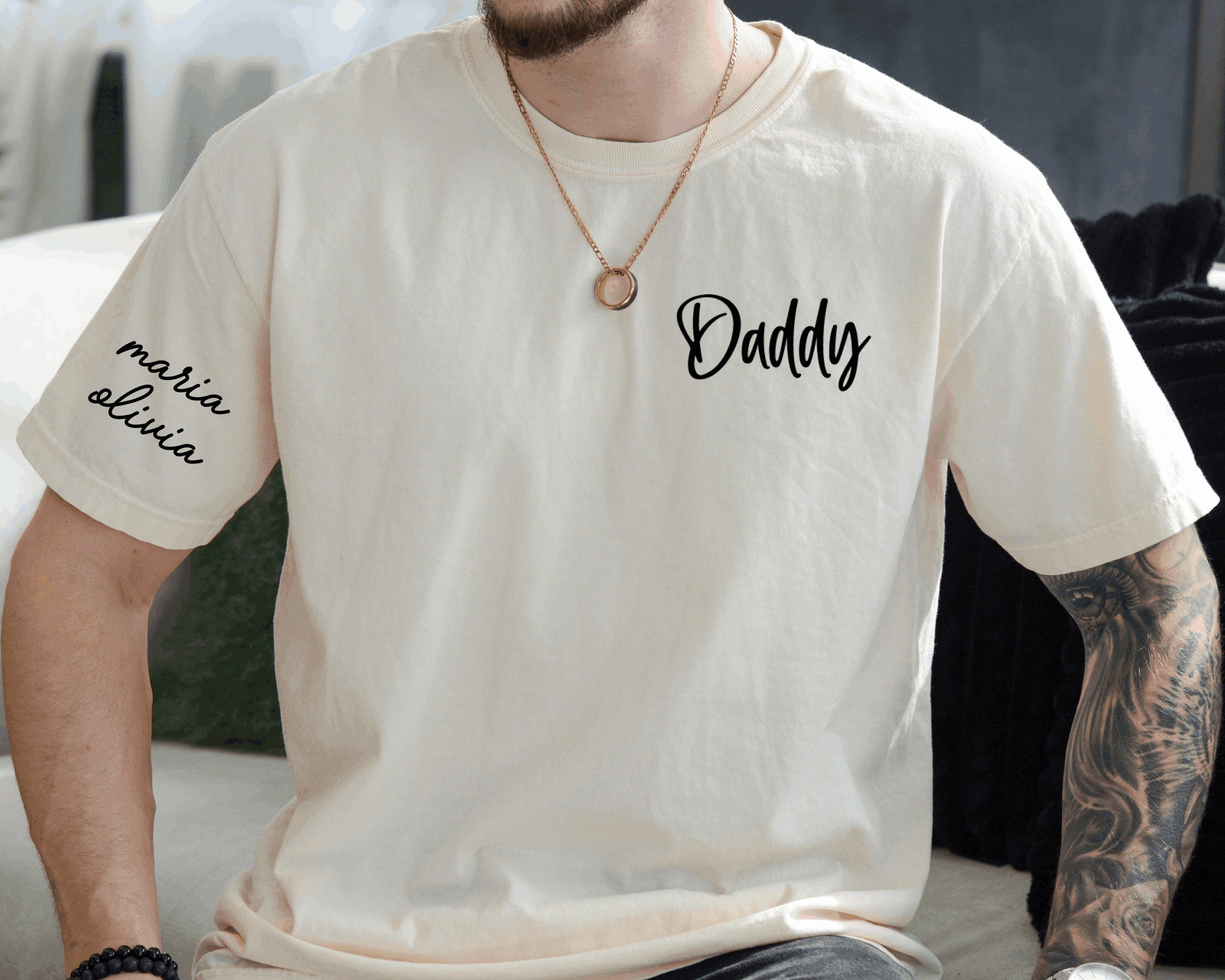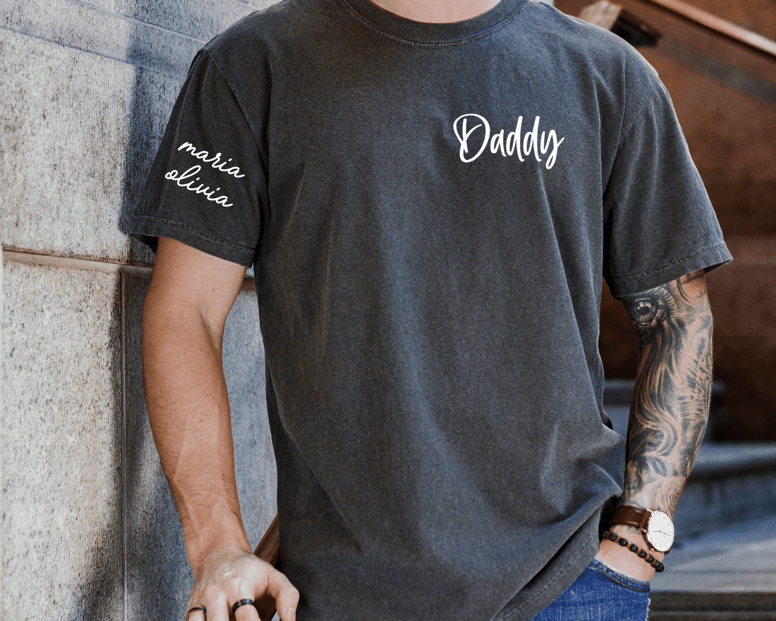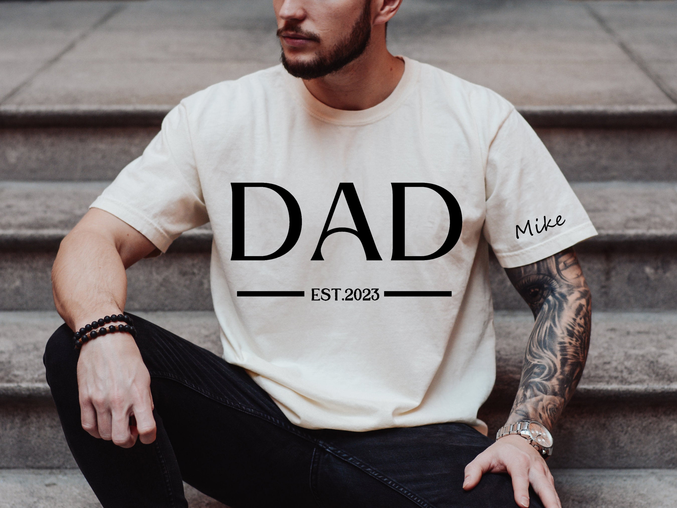 Custom Dad Est Shirt with Children's name On Sleeves Gift for new Dad Father's day shirt