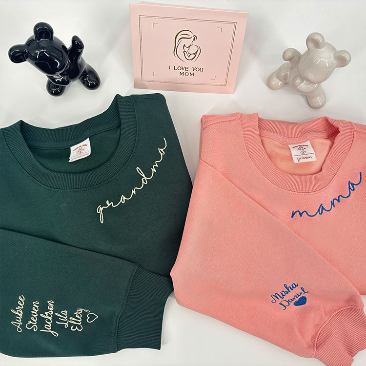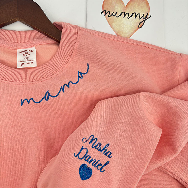 Custom Mama Embroidered Sweatshirt with Kids Names sleeve Personalized Mother's Day Gift