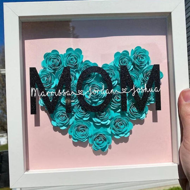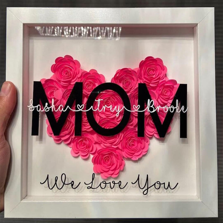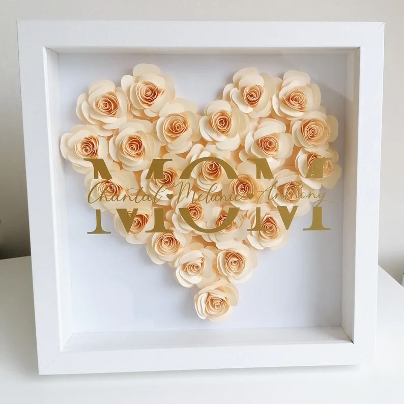 MUM Heart Shaped Monogram Flower Shadow Box Gift For Mothers