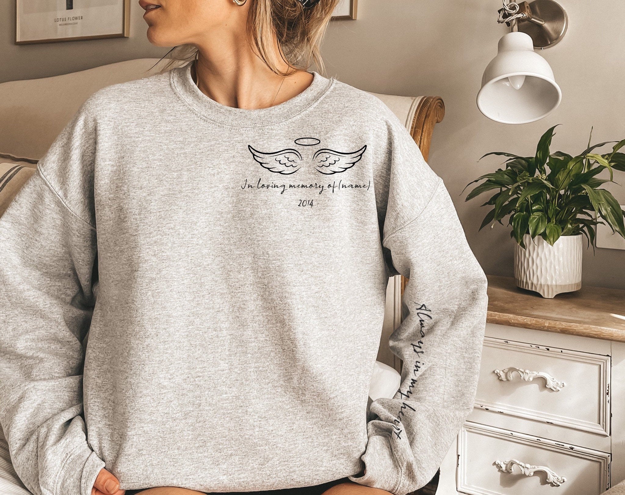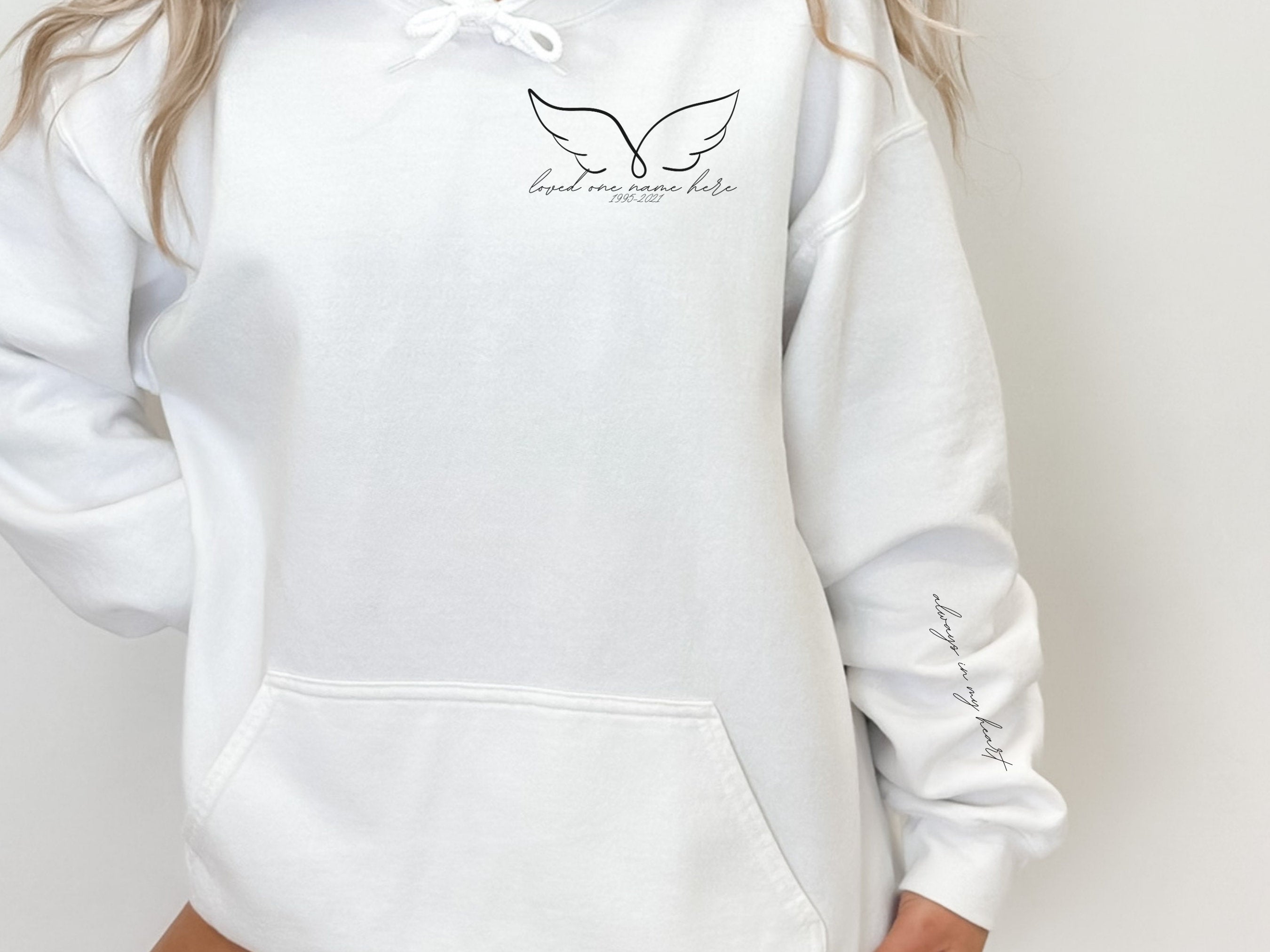 Angel Sweatshirt, Famous Quotes, Memorial Day Shirt, In loving memory of with CUSTOM name date and quote Angel Wings Print Hoodie