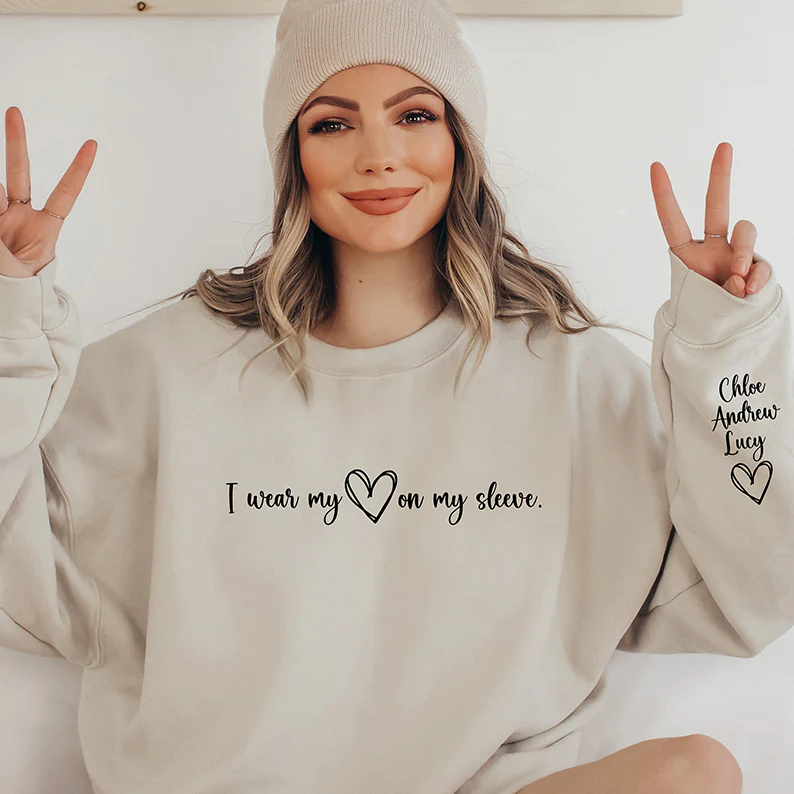 I Wear My Heart on My Sleeve, Custom Sweatshirt, with Names