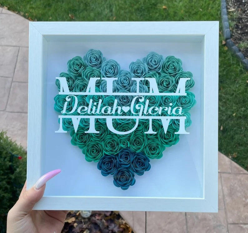 Mum Heart Shaped Monogram Flower Shadow Box Gift For Mothers-Green