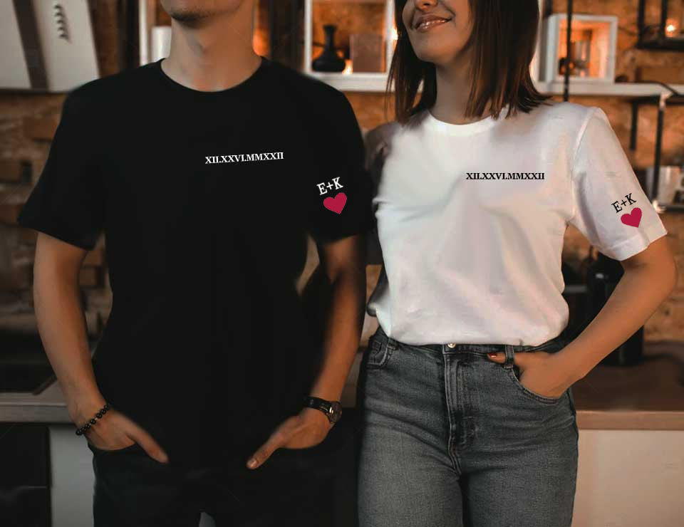 Custom Roman Numeral Shirts, Personalized Couples Gifts, Anniversary Gifts, Valentine's Day Gifts, Roman Numeral Couples Matching Shirts