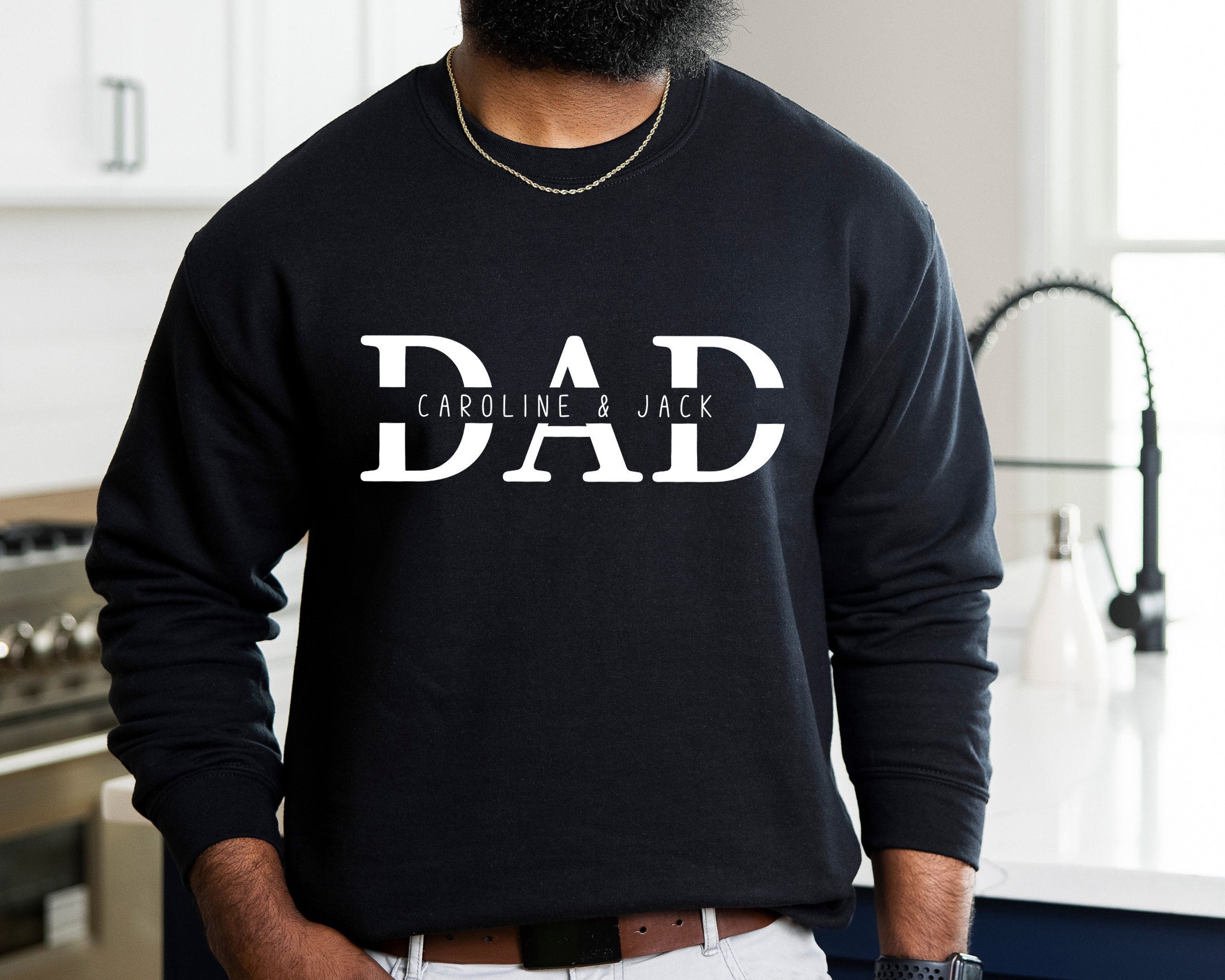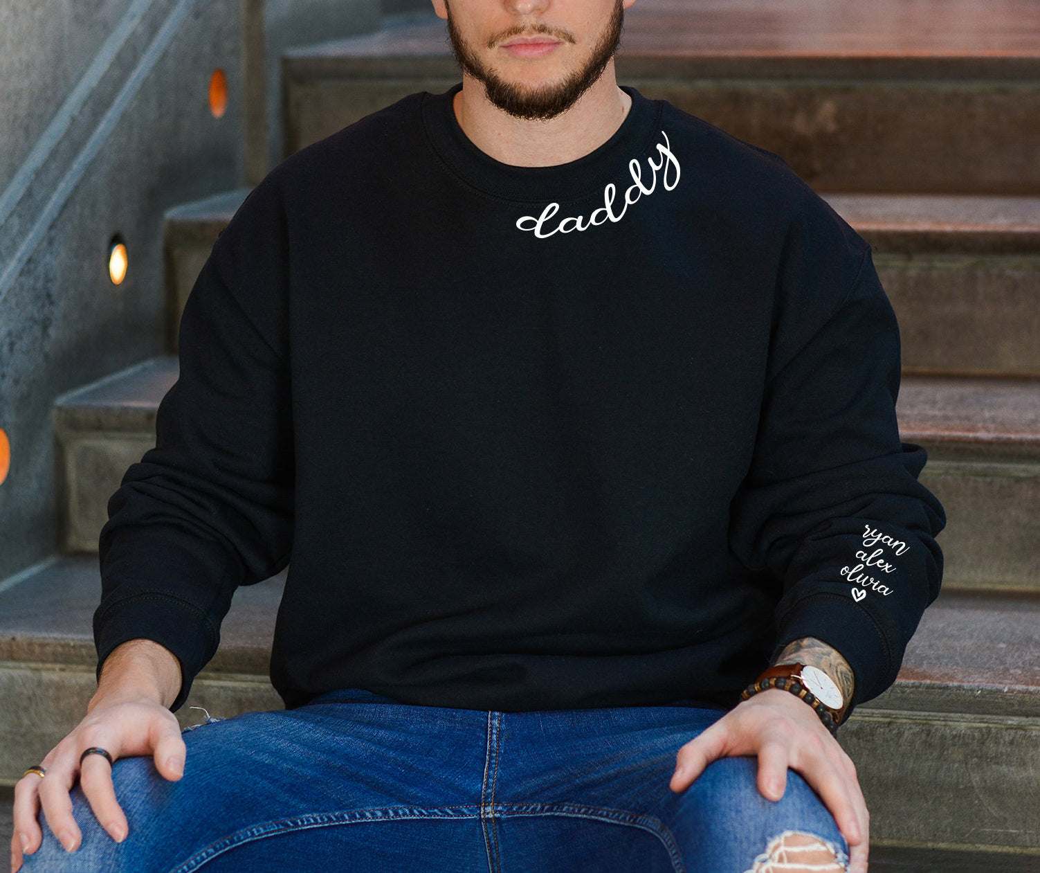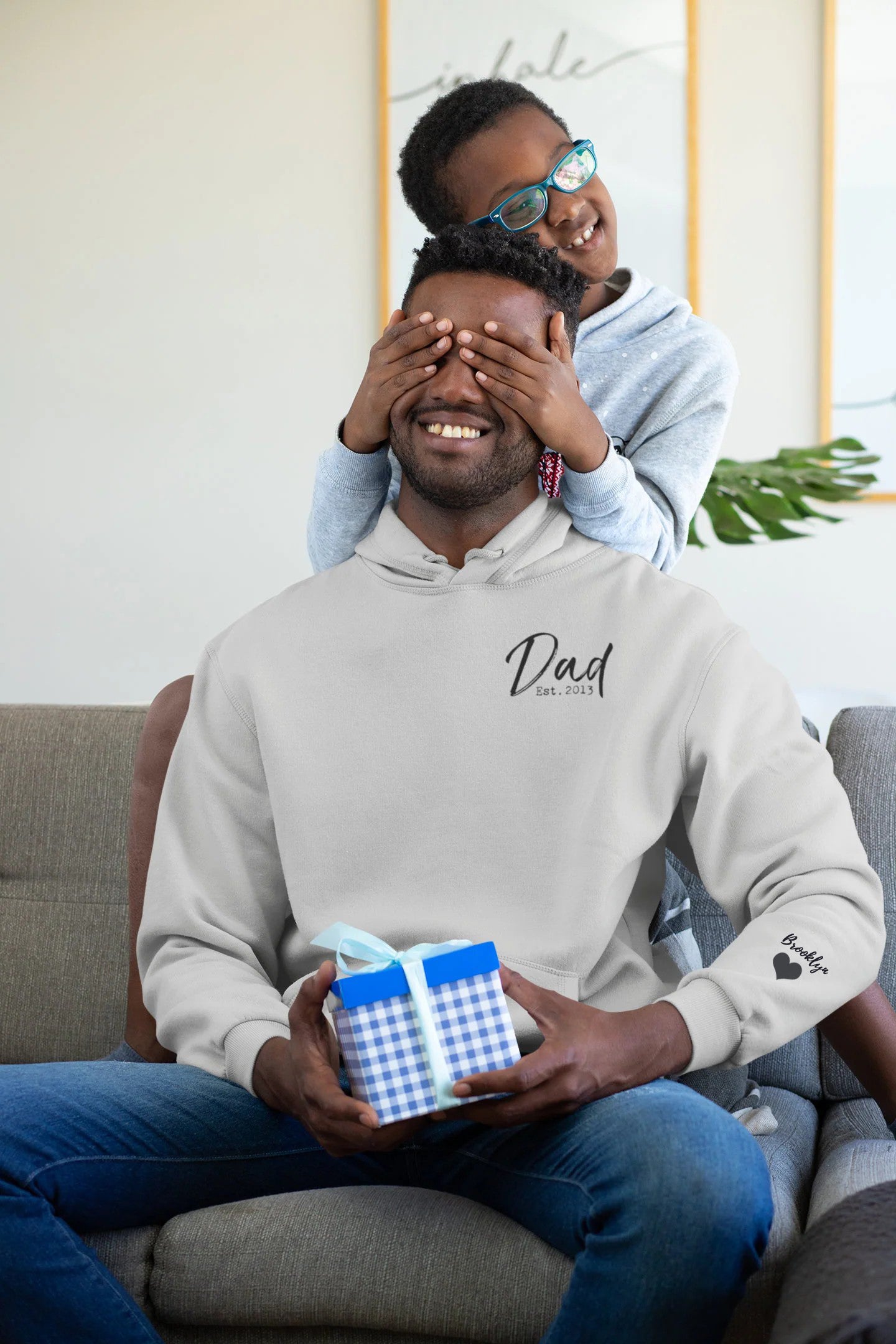 Custom Dad Est with Kids Names and Heart on Sleeve Sweatshirt,Dad Est Sweatshirt,Unique Gifts for Dad, Father's Day Gift