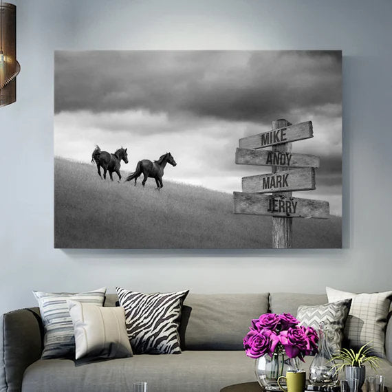 Personalized Horses Multi-Name Custom Canvas, Father's Day Wall Art Personalized Canvas, Personalized Gift for Father's day, Family Names Custom Gift Canvas