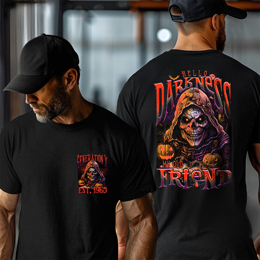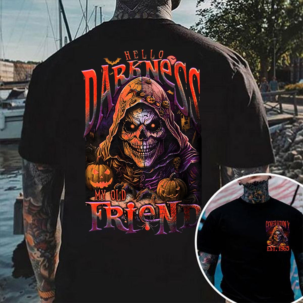 Hello Darkness My Old Friend Shirt, Grim Reaper Halloween Shirt, Vintage Horror Graphic Tee, Spooky Fall Shirt, Custom Year Of Birth T shirt