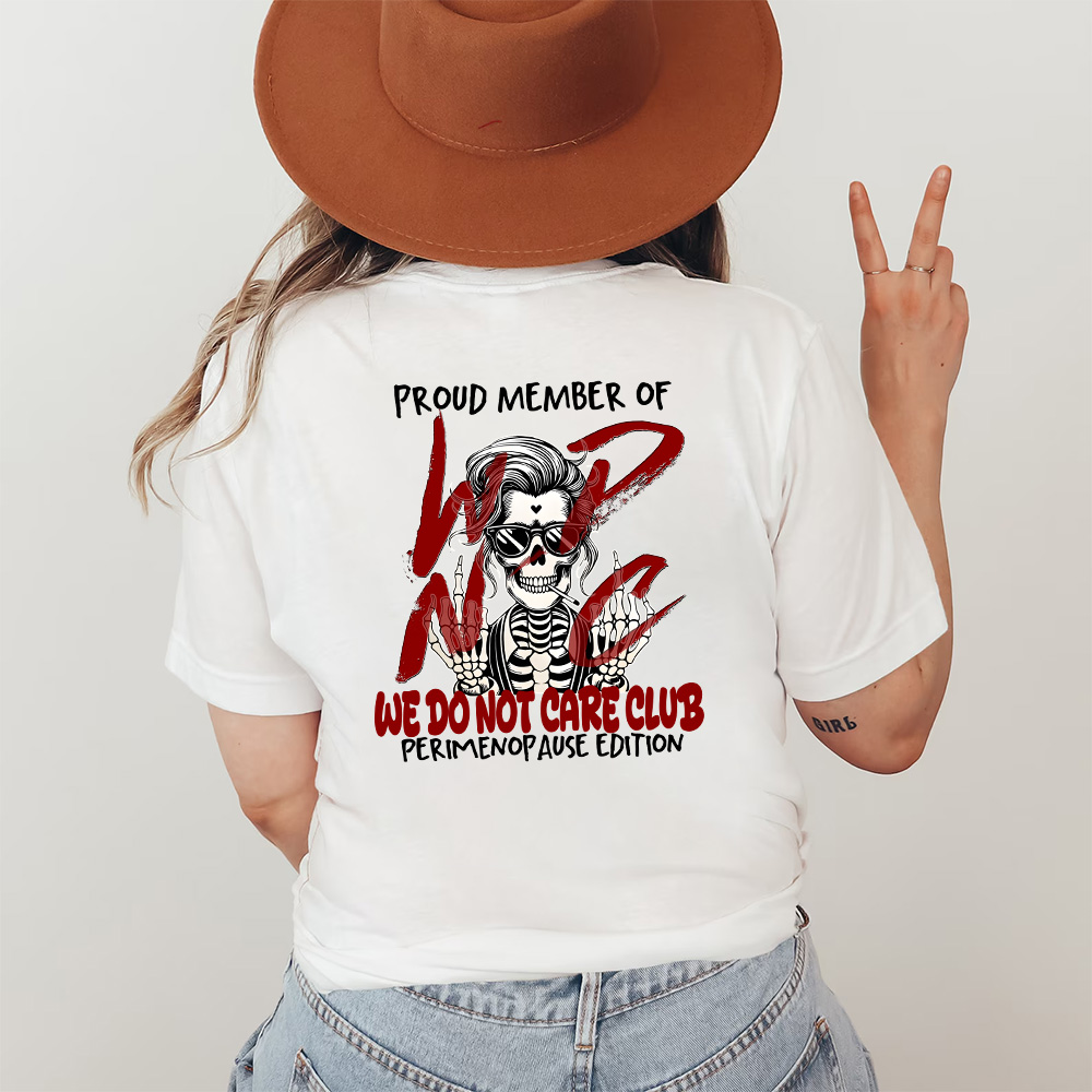 We Do Not Care Club T-shirt, Funny Skeleton Graphic, Vintage Perimenopause Shirt, Sweatshirt, Hooide