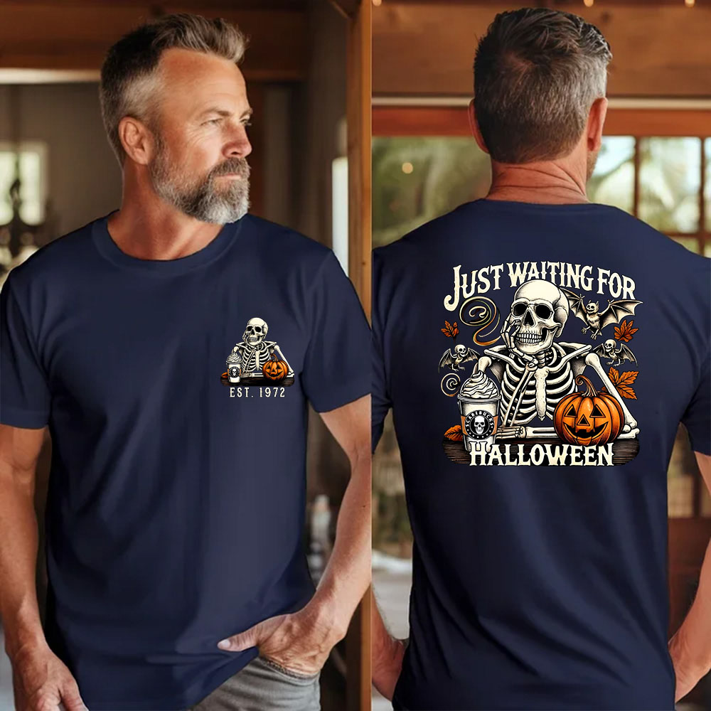 Funny Skeleton Halloween Shirt, Just Waiting for Halloween aphic Tee, Spooky Fall Shirt, Custom Year Of Birth T shirt