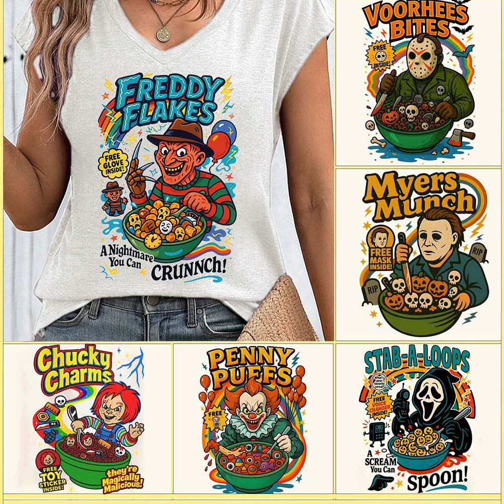 Funny Halloween Graphic Shirt, Horror Character V-neck Shirt
