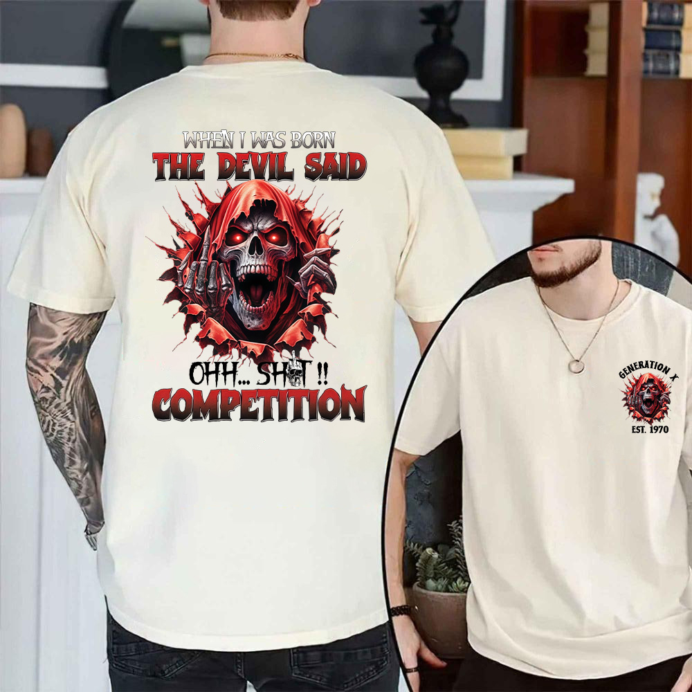 Personalized When I Was Born The Devil Said , Oh Sh!t Competition Shirt, Gen X Devil Shirt, Custom Year Of Birth T shirt, Cotton T Shirt