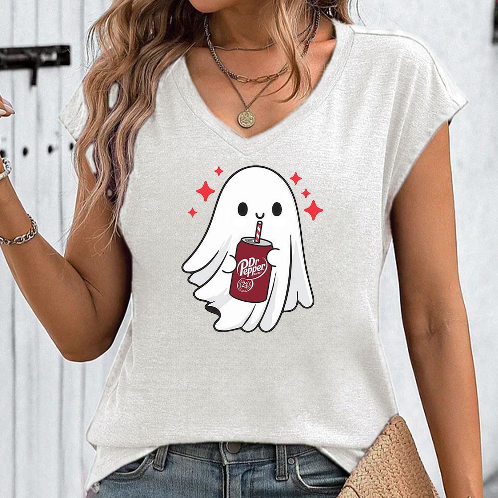 Halloween Ghost Shirt, Funny Skeleton Halloween V-neck Shirt