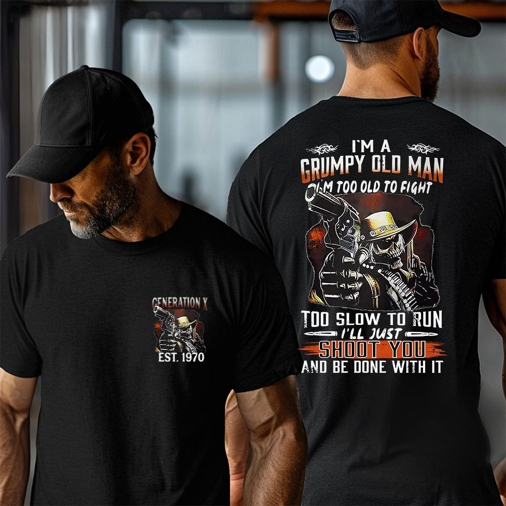 Customize Generation X Grumpy Old Man Shirt, Custom Year Of Birth T shirt, “Too Old to Fight, Too Slow to Run” Statement Shirt