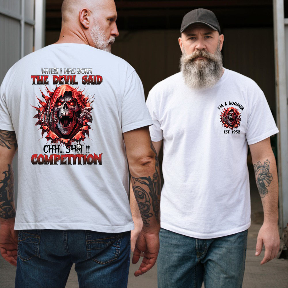 Personalized When I Was Born The Devil Said , Oh Shit Competition Shirt, Boomer Devil Shirt, Custom Year Of Birth T shirt, Cotton T Shirt