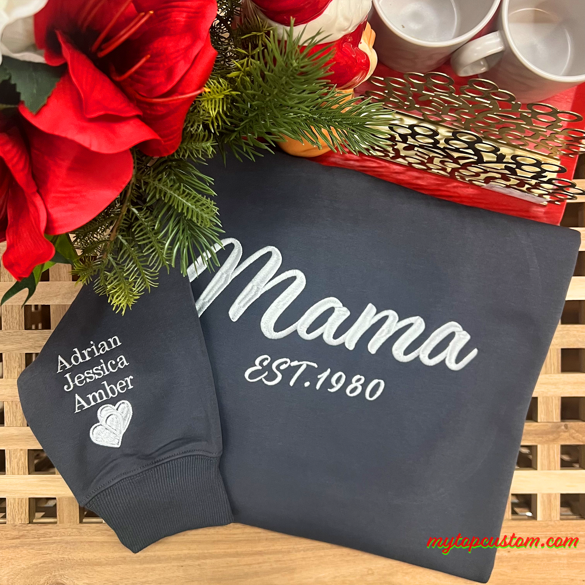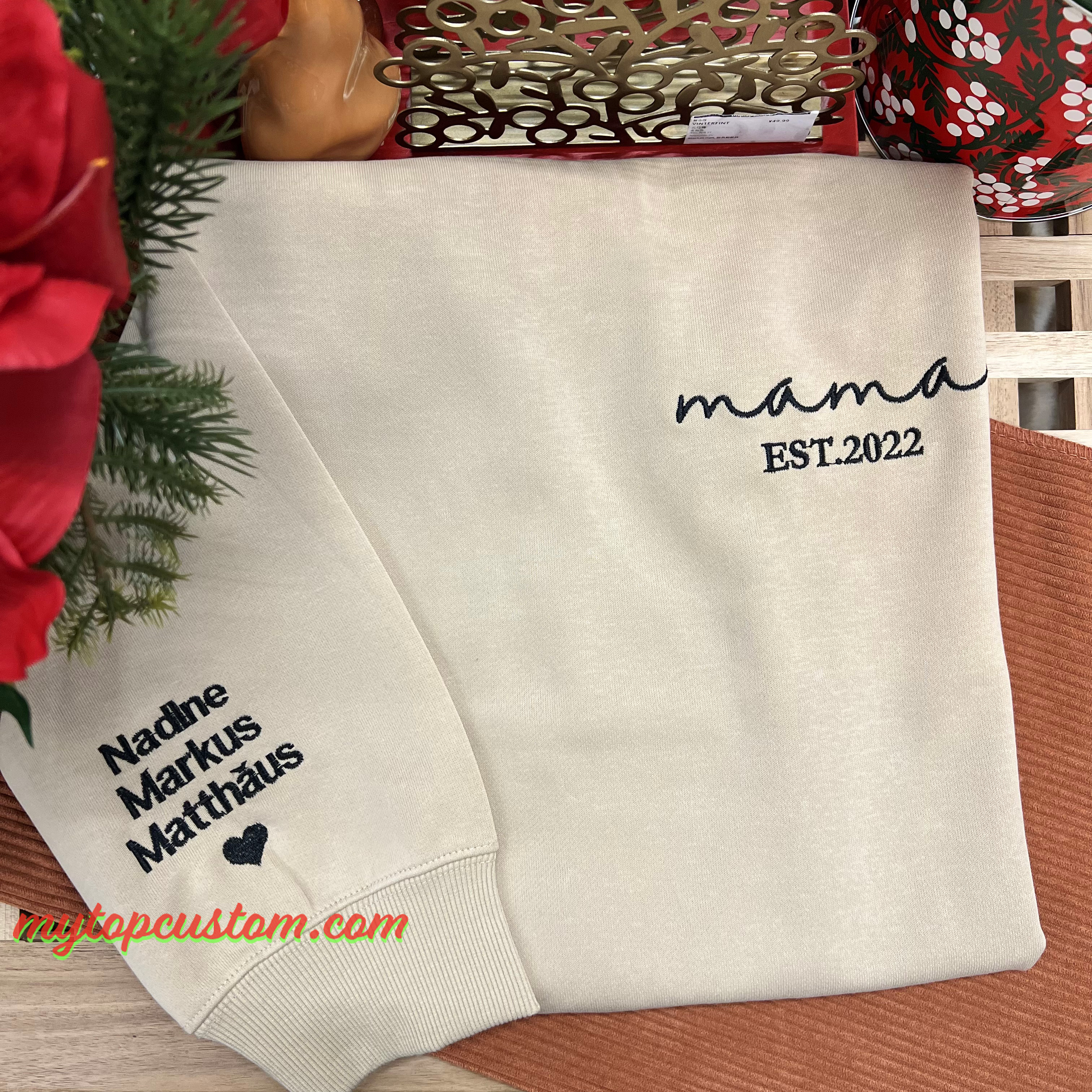 Mama Embroidered Sweatshirt, Custom Mama Est Year Sweatshirt With Names