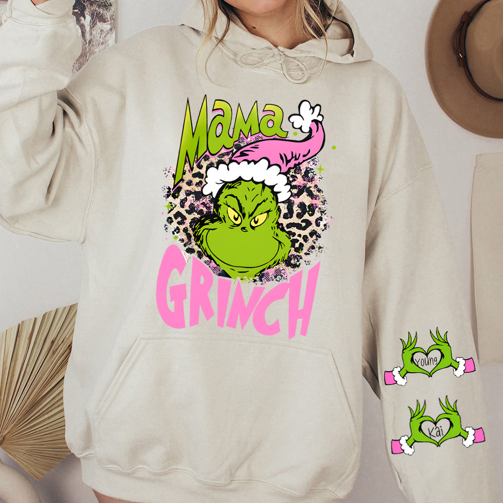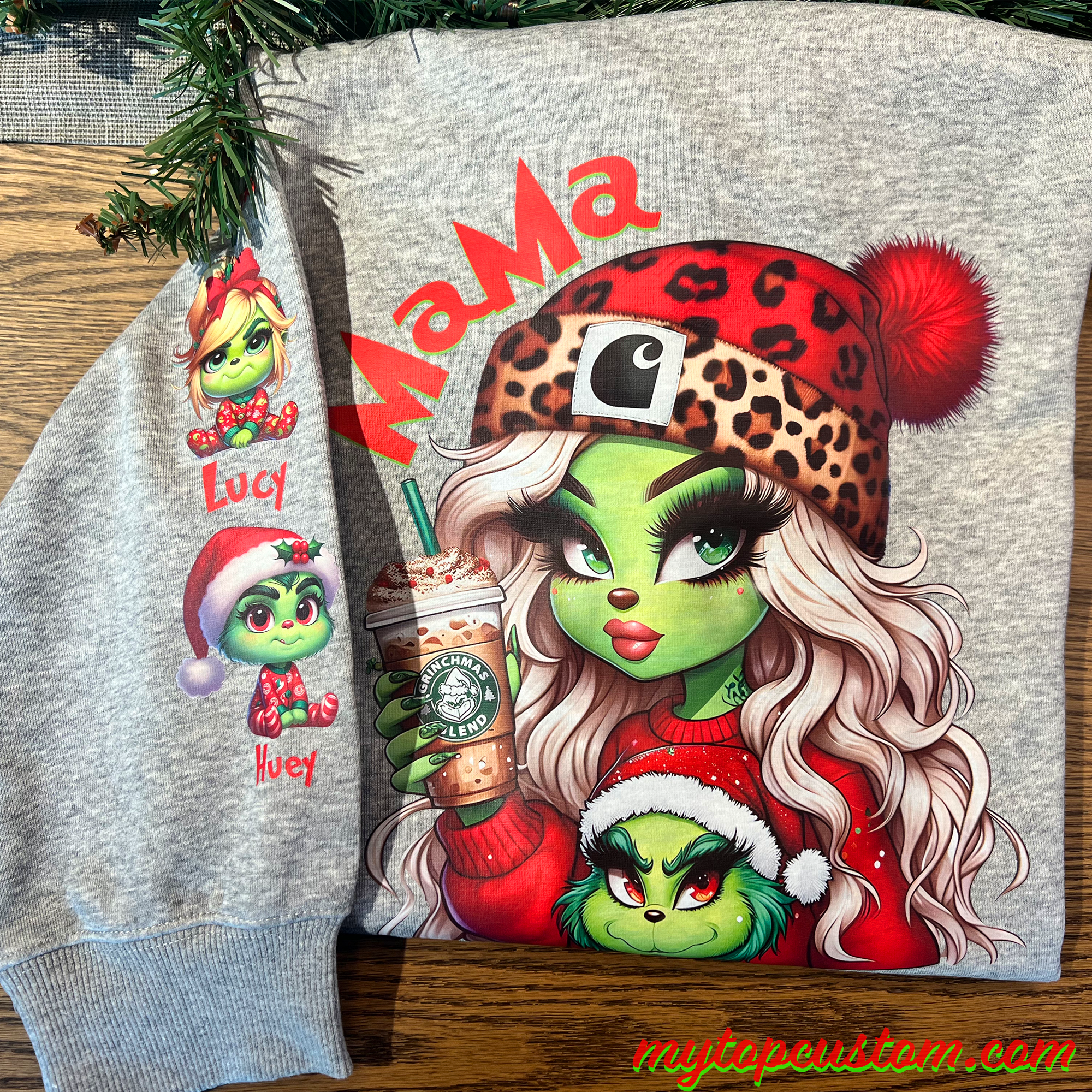 Custom Retro Cute Christmas Mama With Kid's Name On Sleeve Sweatshirt