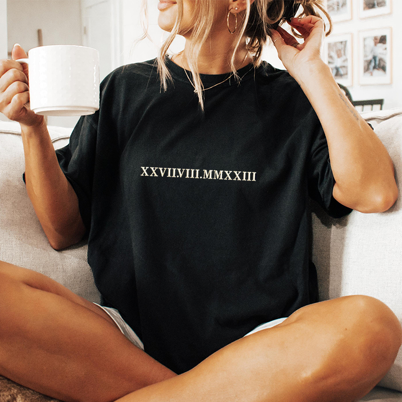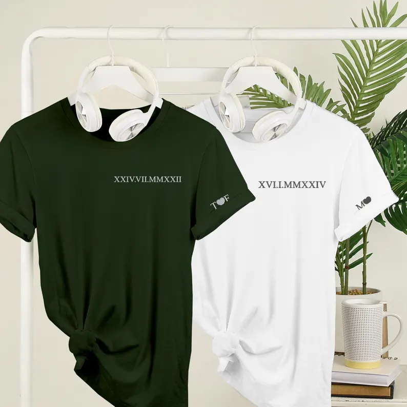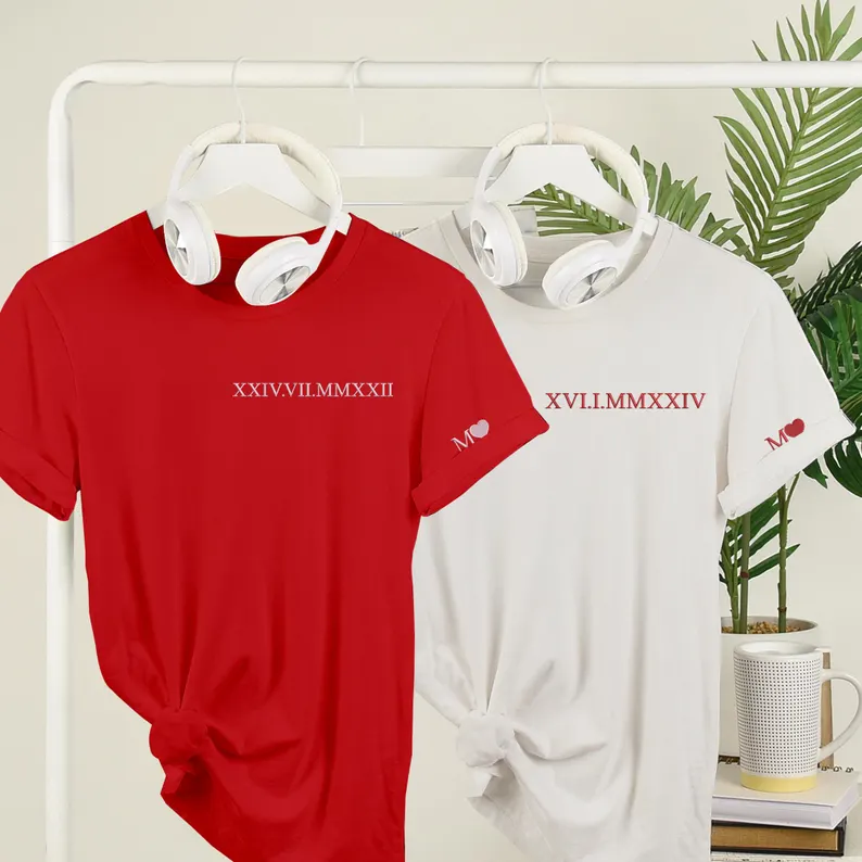 Embroidered Couple T-shirts Gift, Roman Numerals Embroidered On The Chest, Valentine's Day Gifts, Anniversary Gift