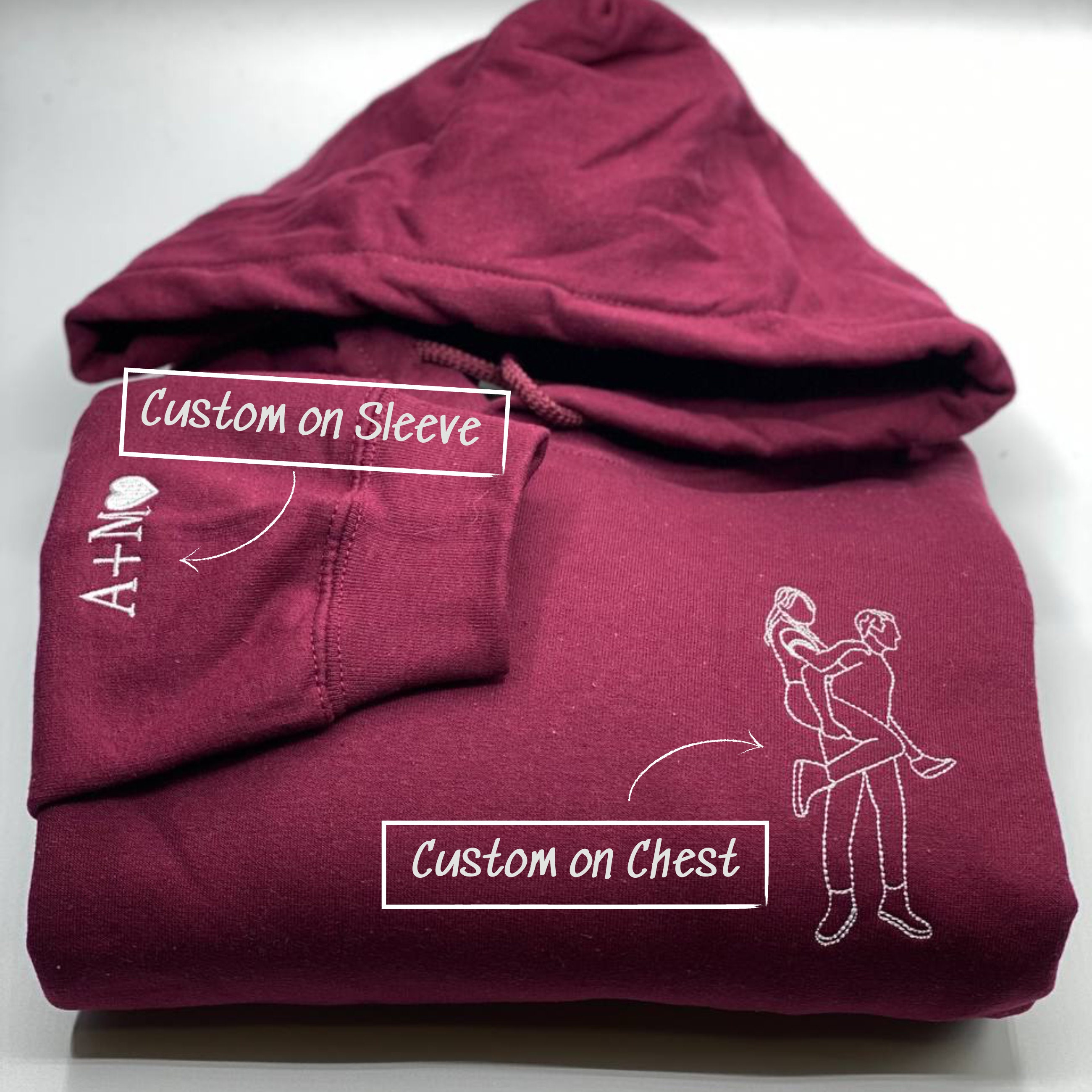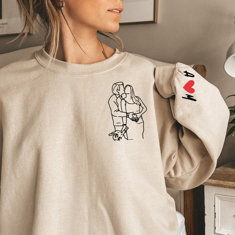 Custom Couple Portrait Sweatshirt, Outline Sketch from Photo Matching Hoody, Anniversary Memorial Sketch Photo Shirt Valentine's Day Gift