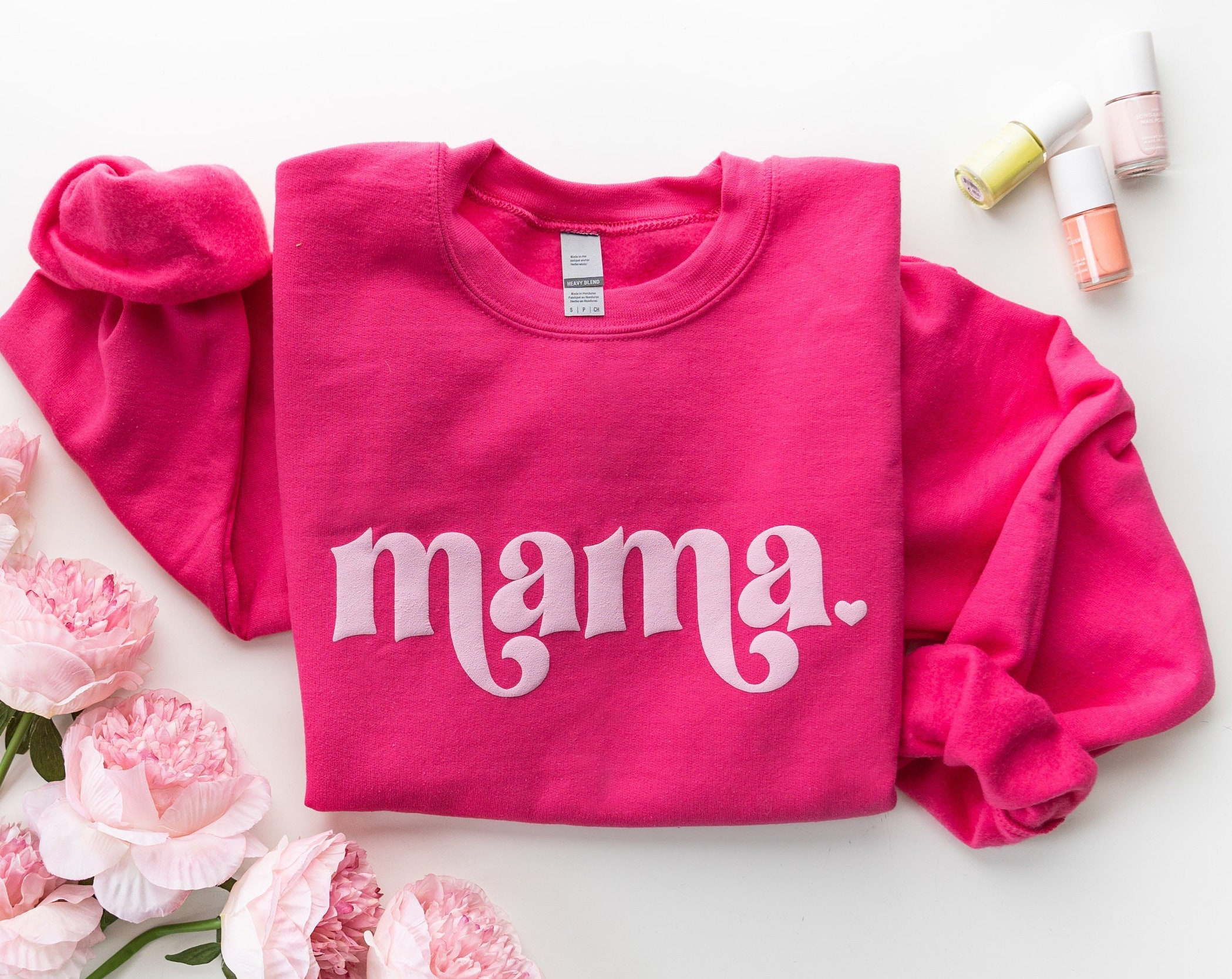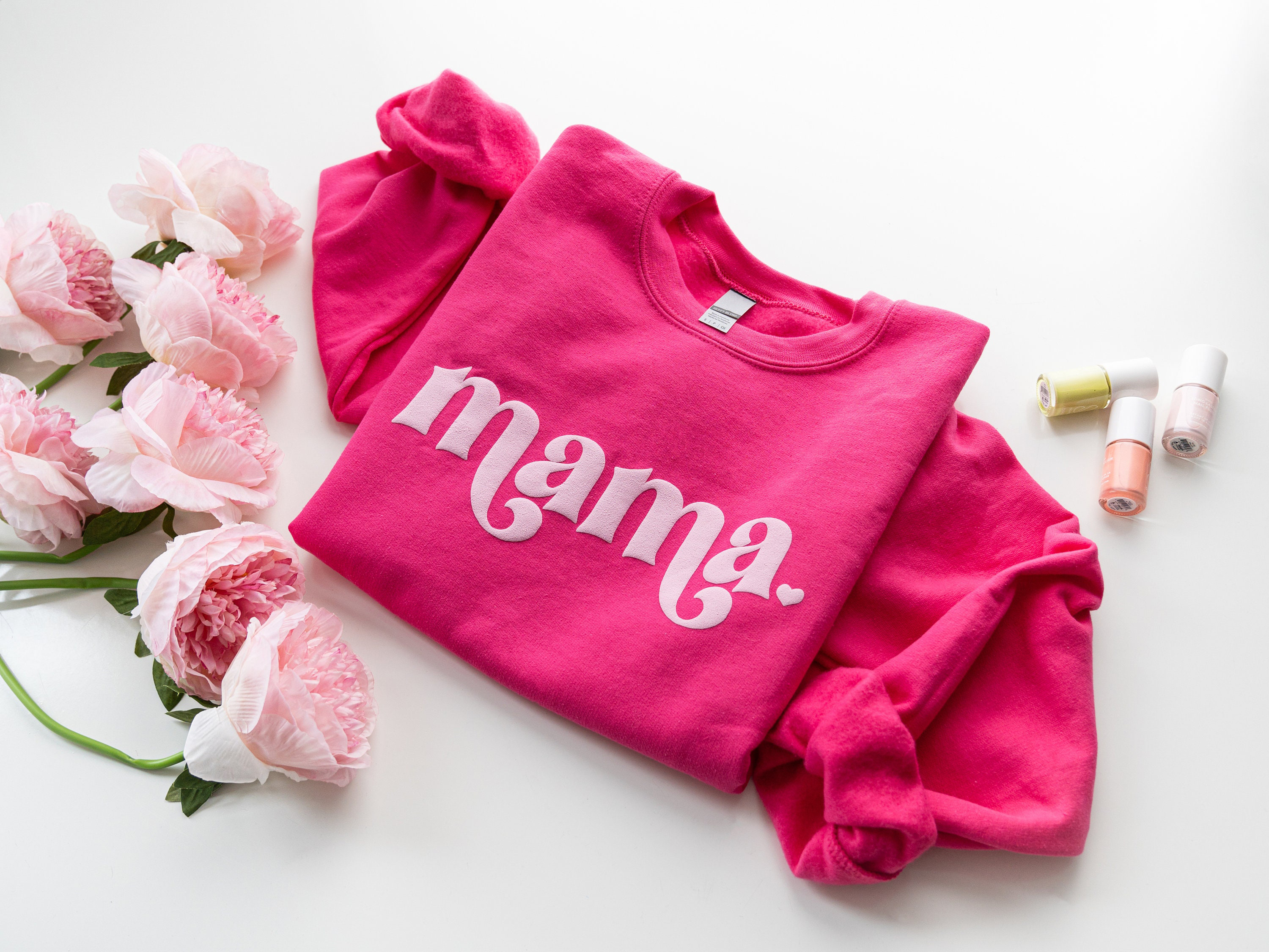 Custom Embroidered Mama Sweatshirt With Kid's Name On Sleeve