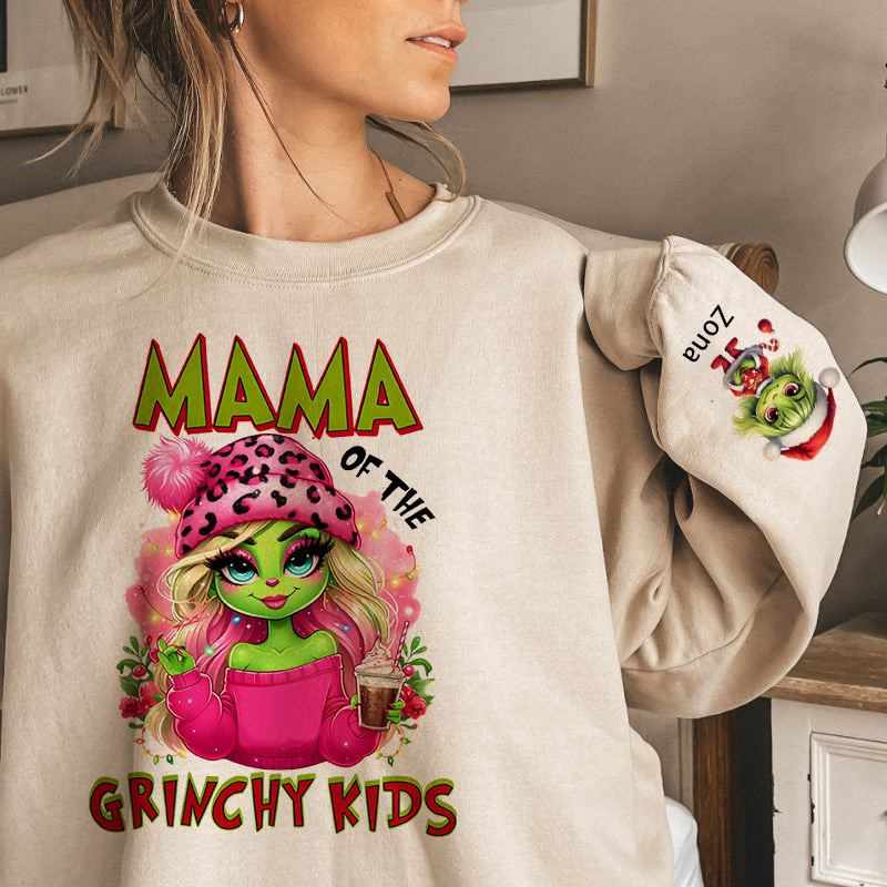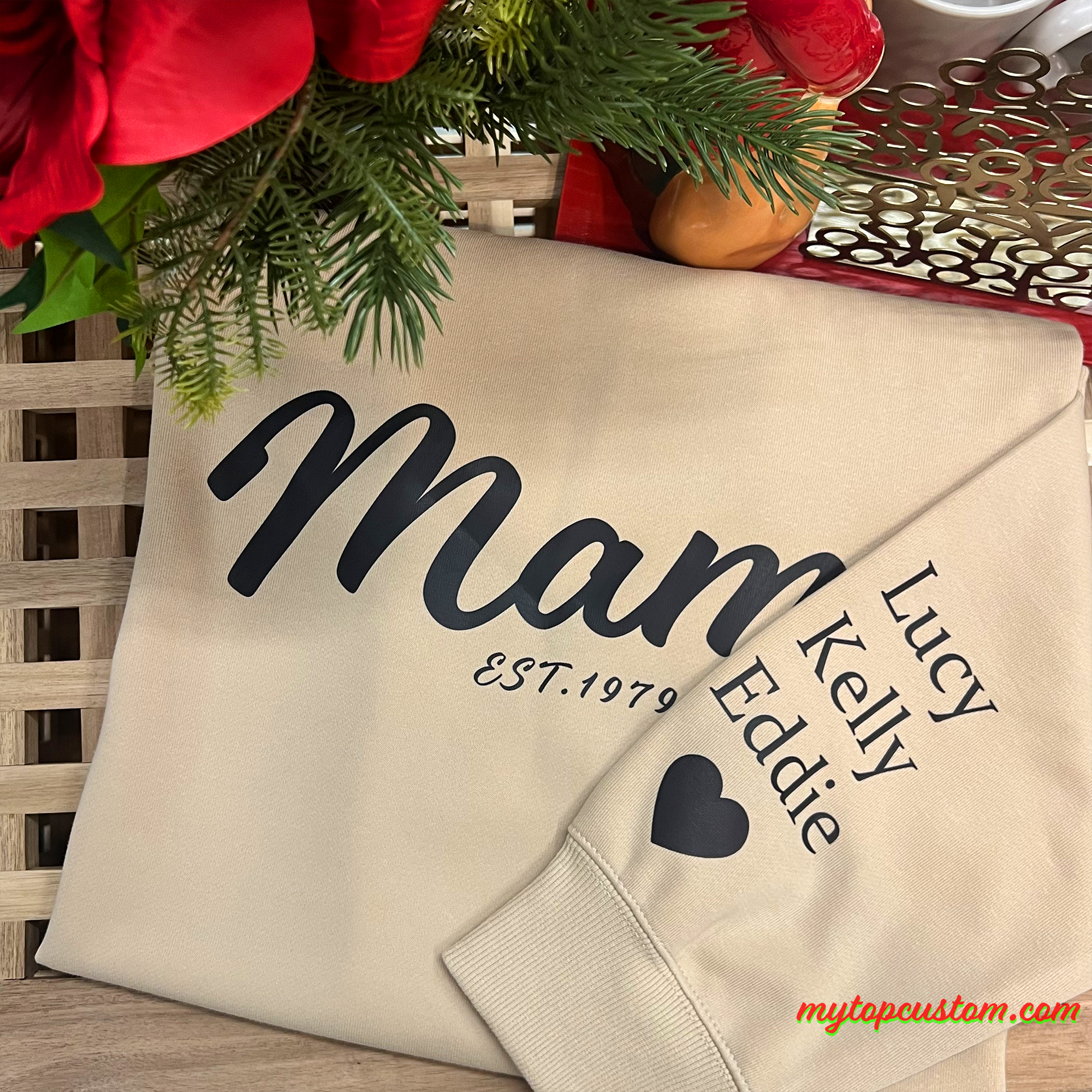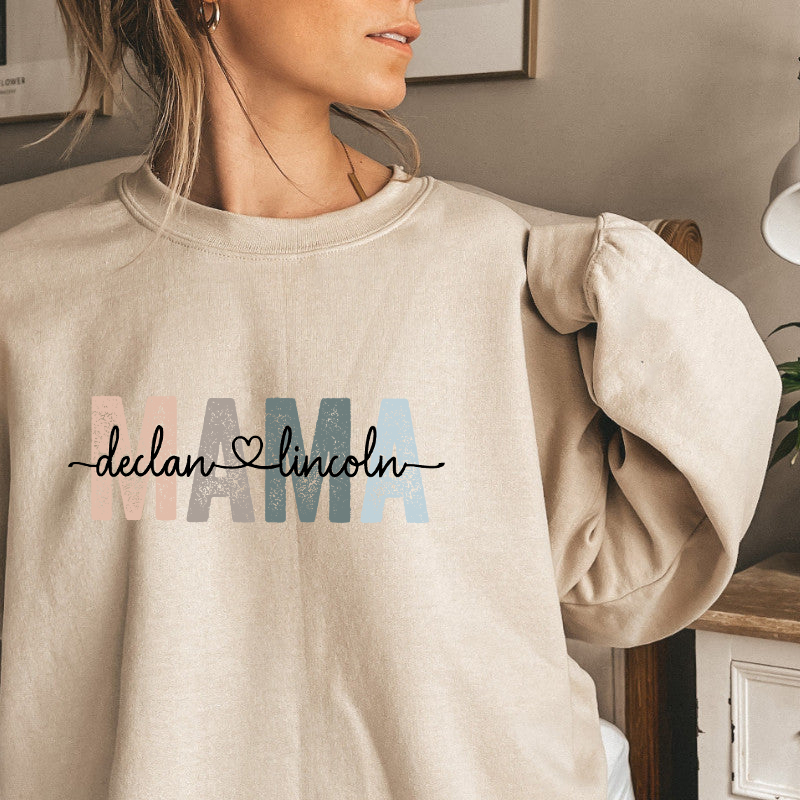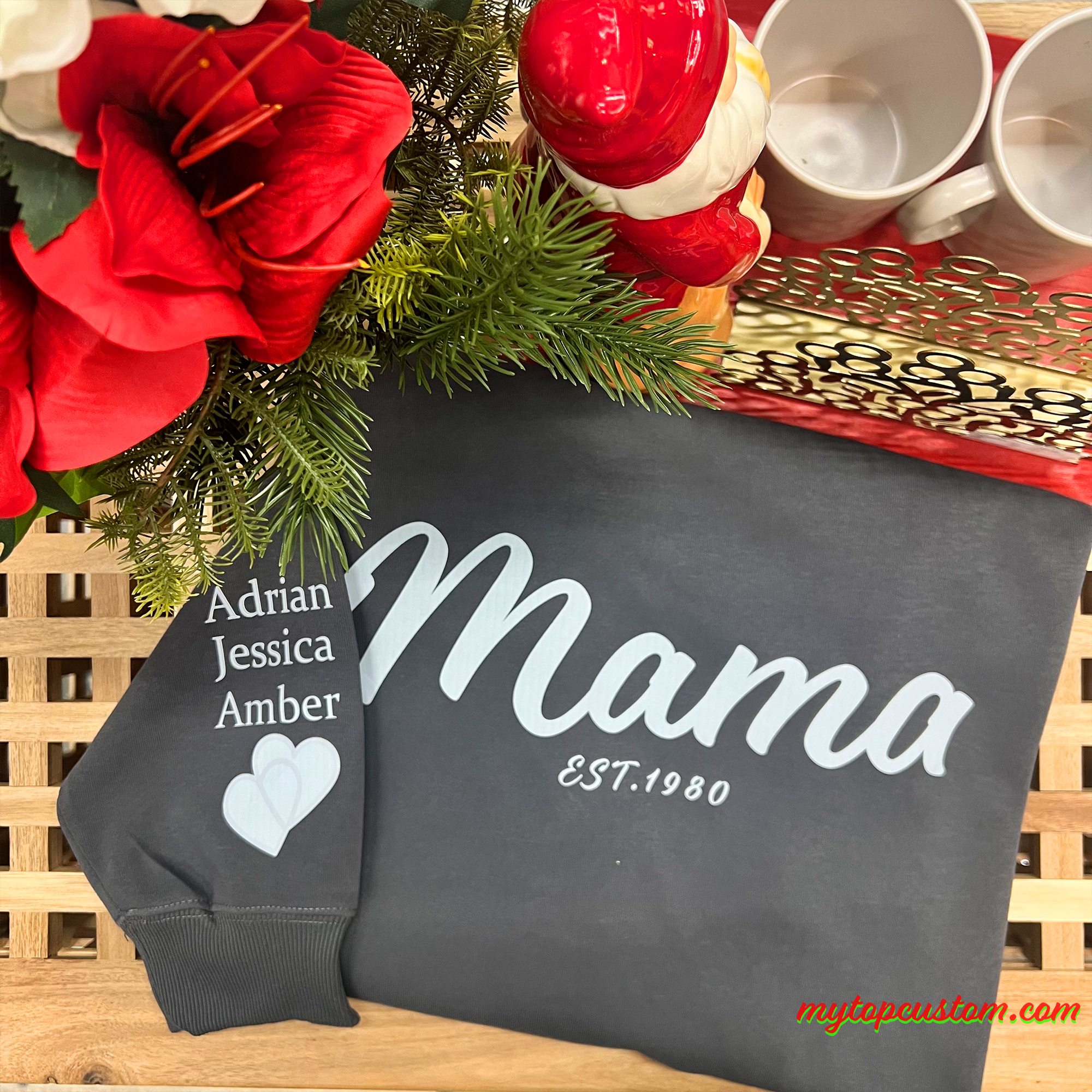 Personalized Custom Mama Sweatshirt with Kid Name on Sleeve Gift for Mom