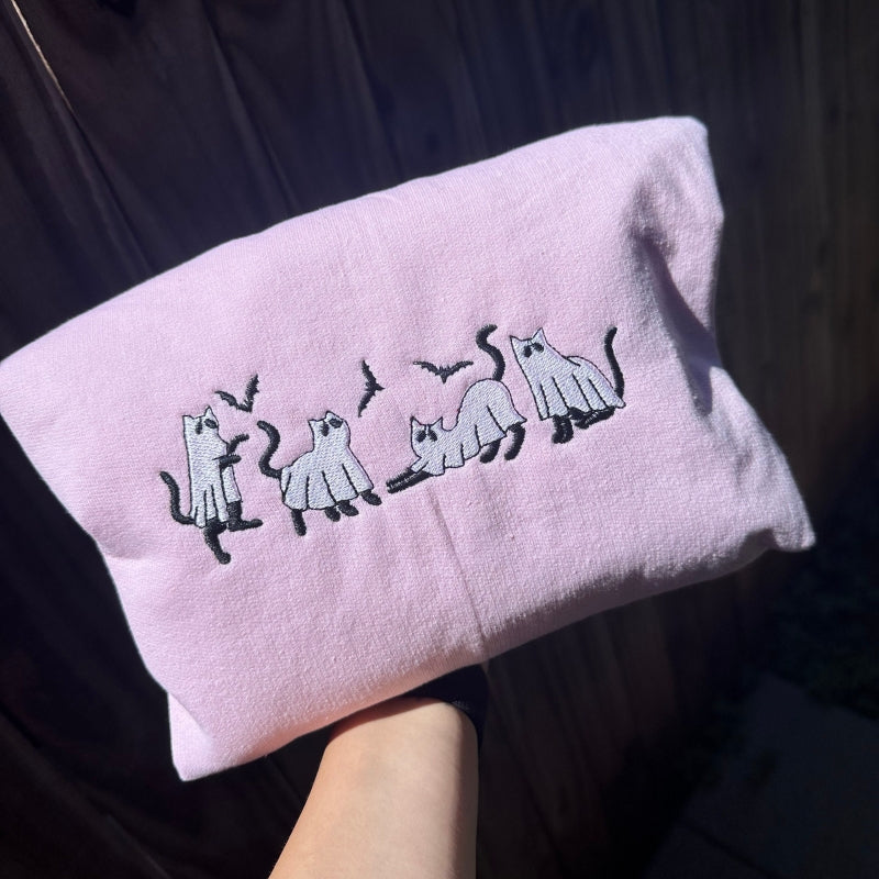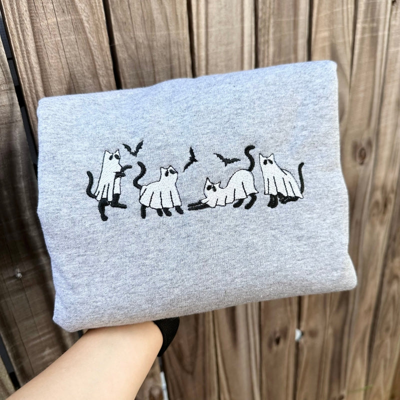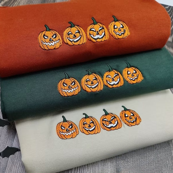 Halloween Embroidered Pumpkin Faces Sweatshirt