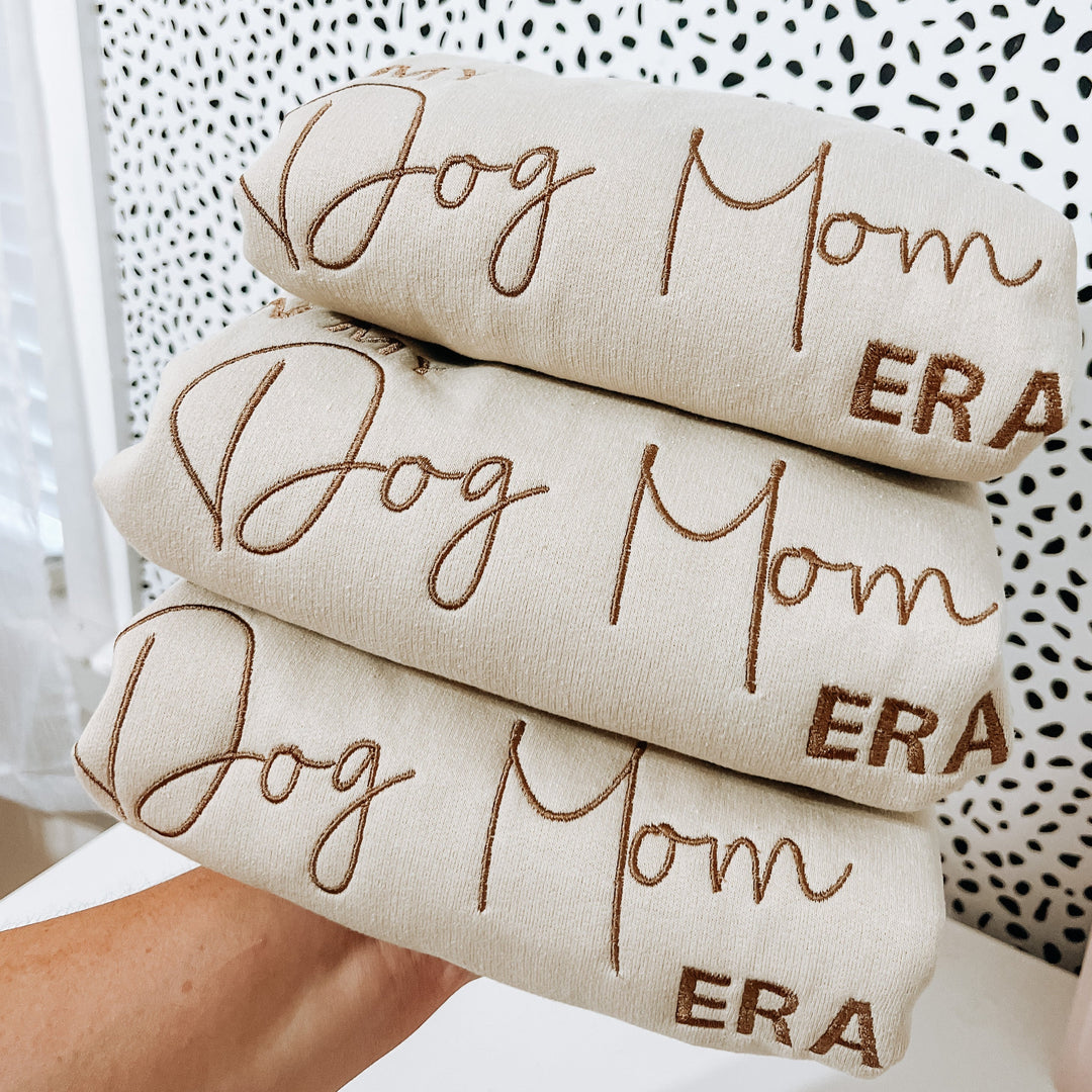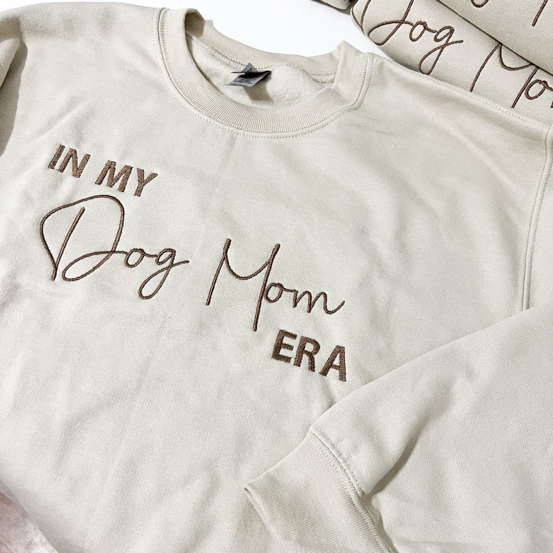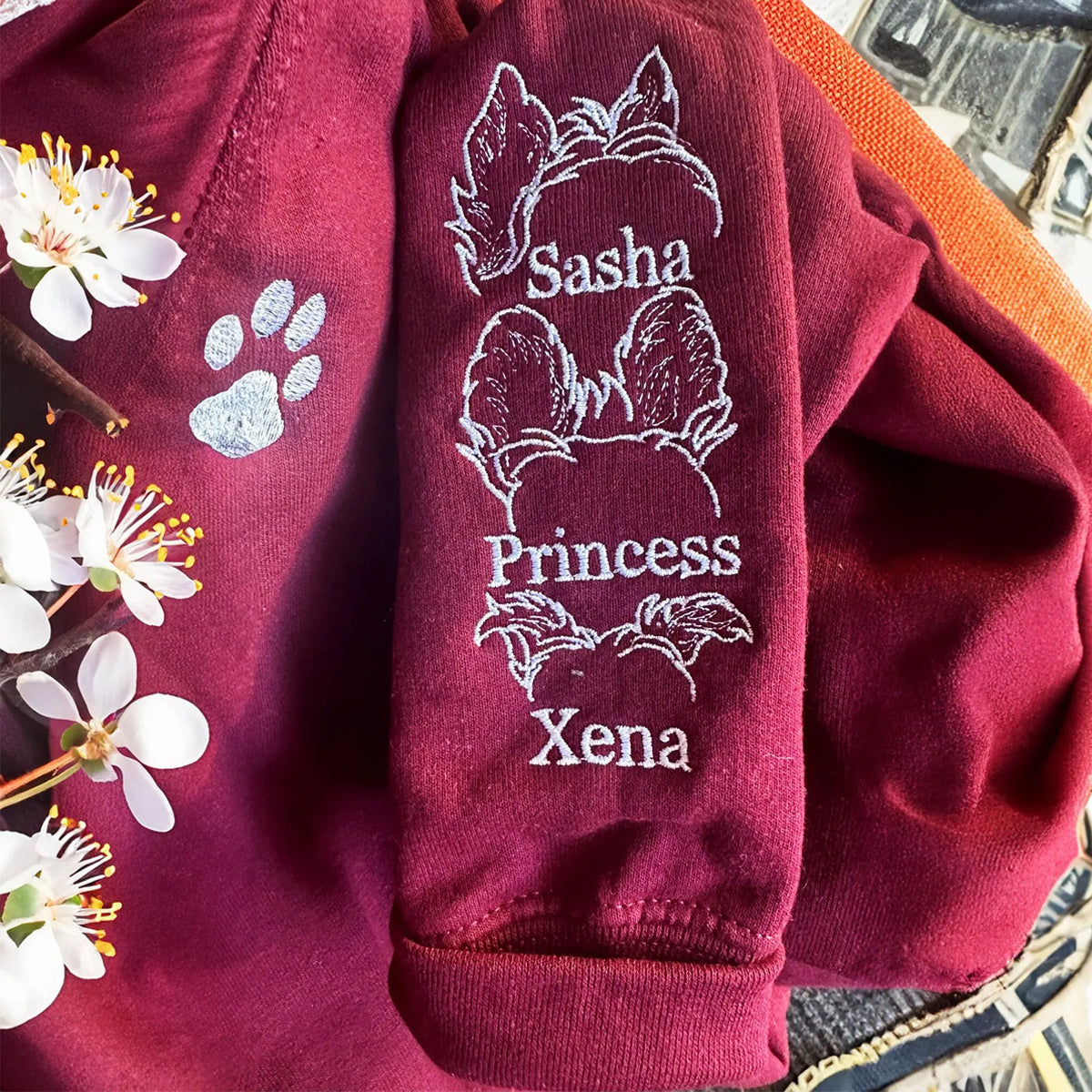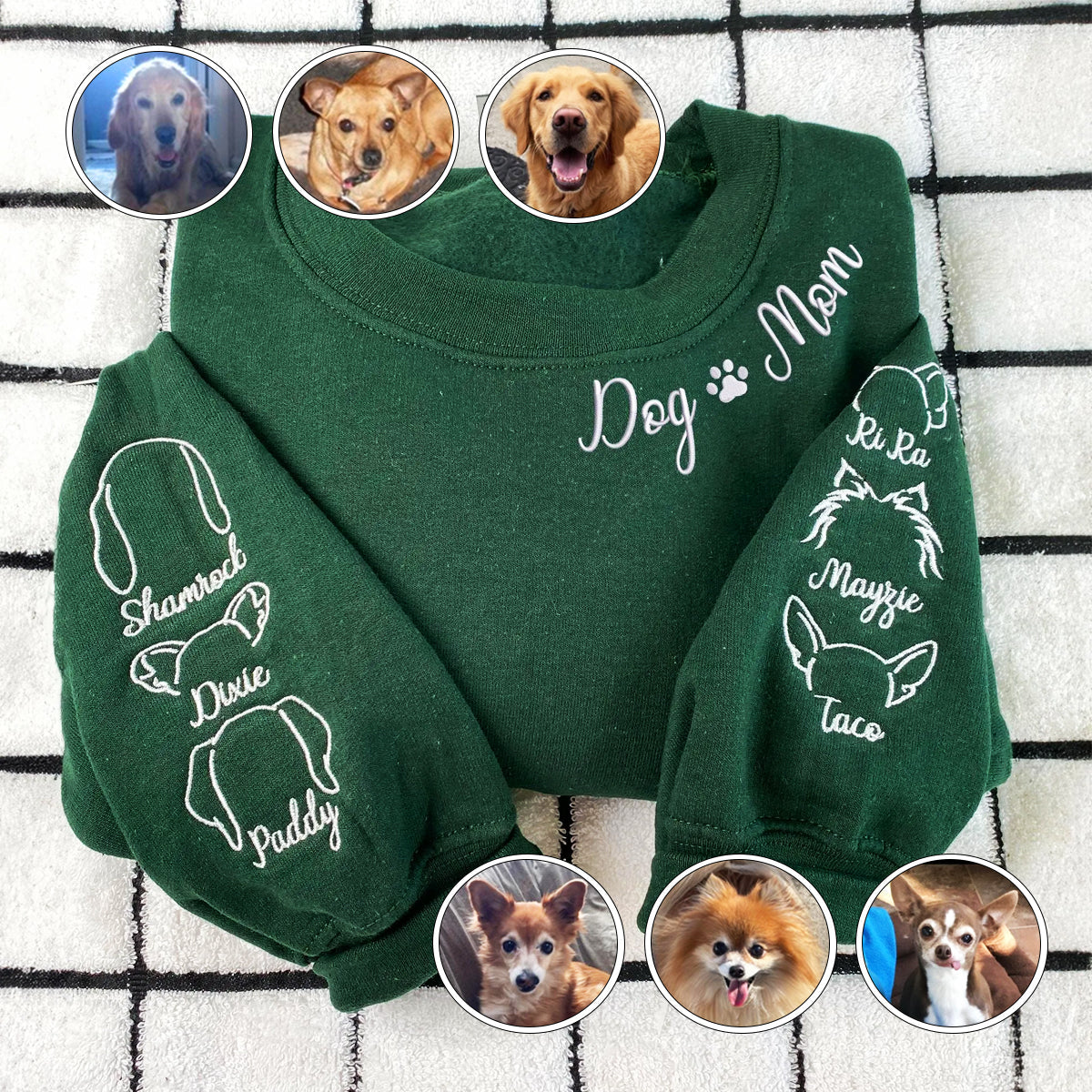 Custom Embroidered Dog Mom Sweatshirt with Dog Ear and Name on Sleeve