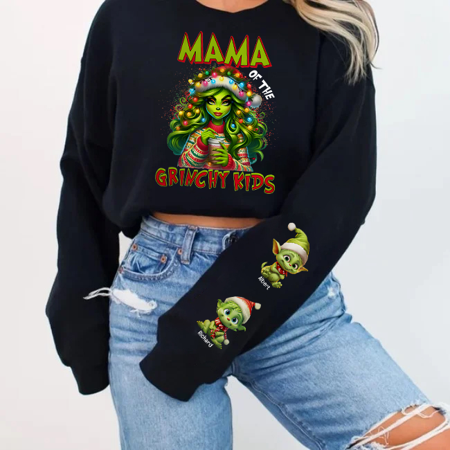 Custom Mama Christmas Sweatshirt With Kids Names On Sleeve