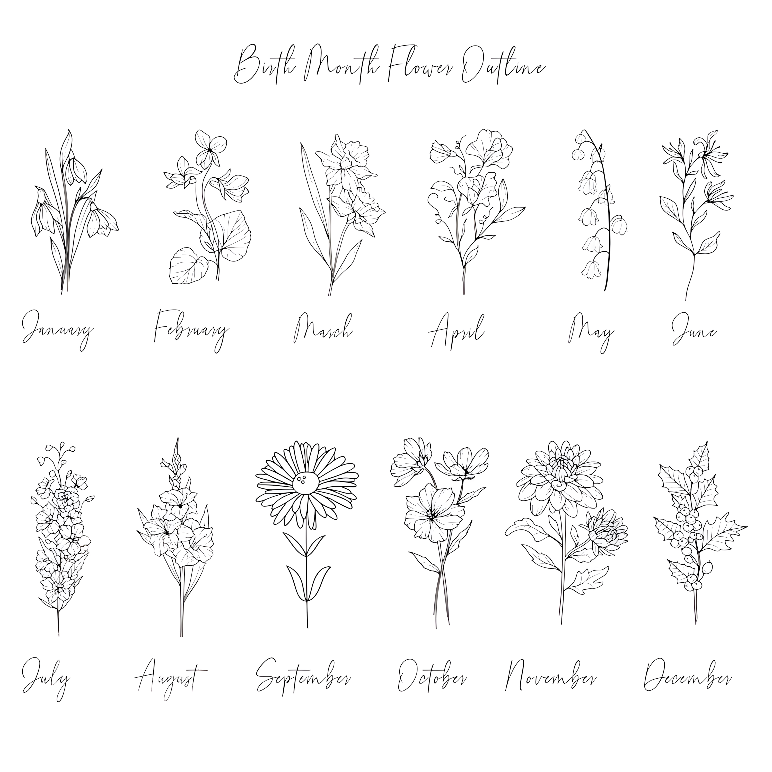 Custom Birth Month Flower Outline Sweatshirt Christmas Gift for Mom