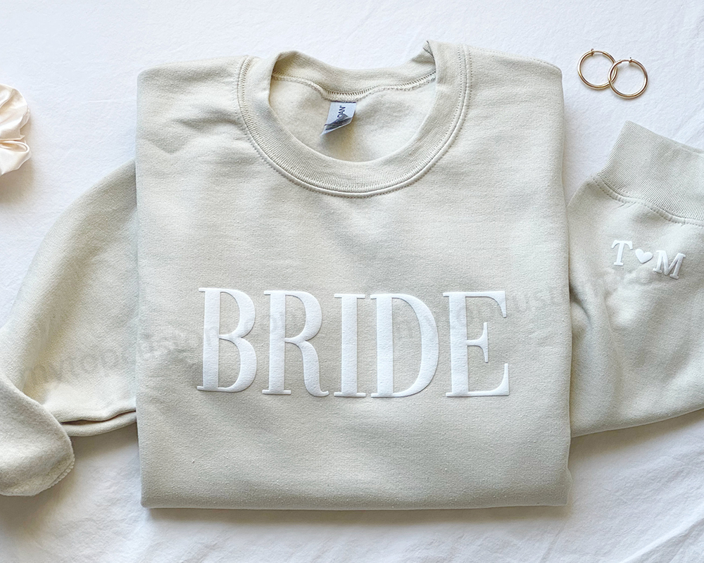 Personalized Gift For Bride, Bride Sweatshirt, Initial Heart Sleeve, Engagement Gift, Unique Bridal Shower Gift, Future Mrs Sweatshirt
