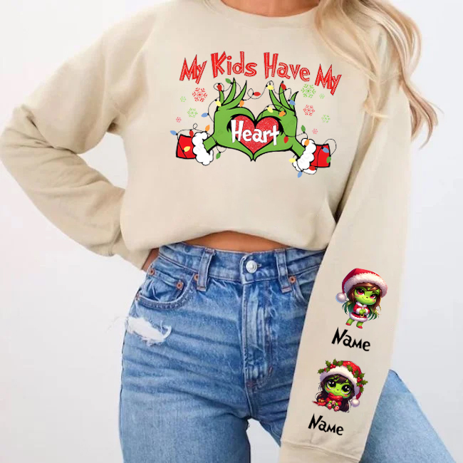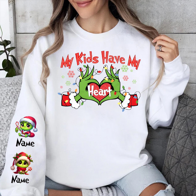 Custom My Grandkids/Kids Have My Heart With Kid's Name On Sleeve Sweatshirt Christmas Gift for Mom