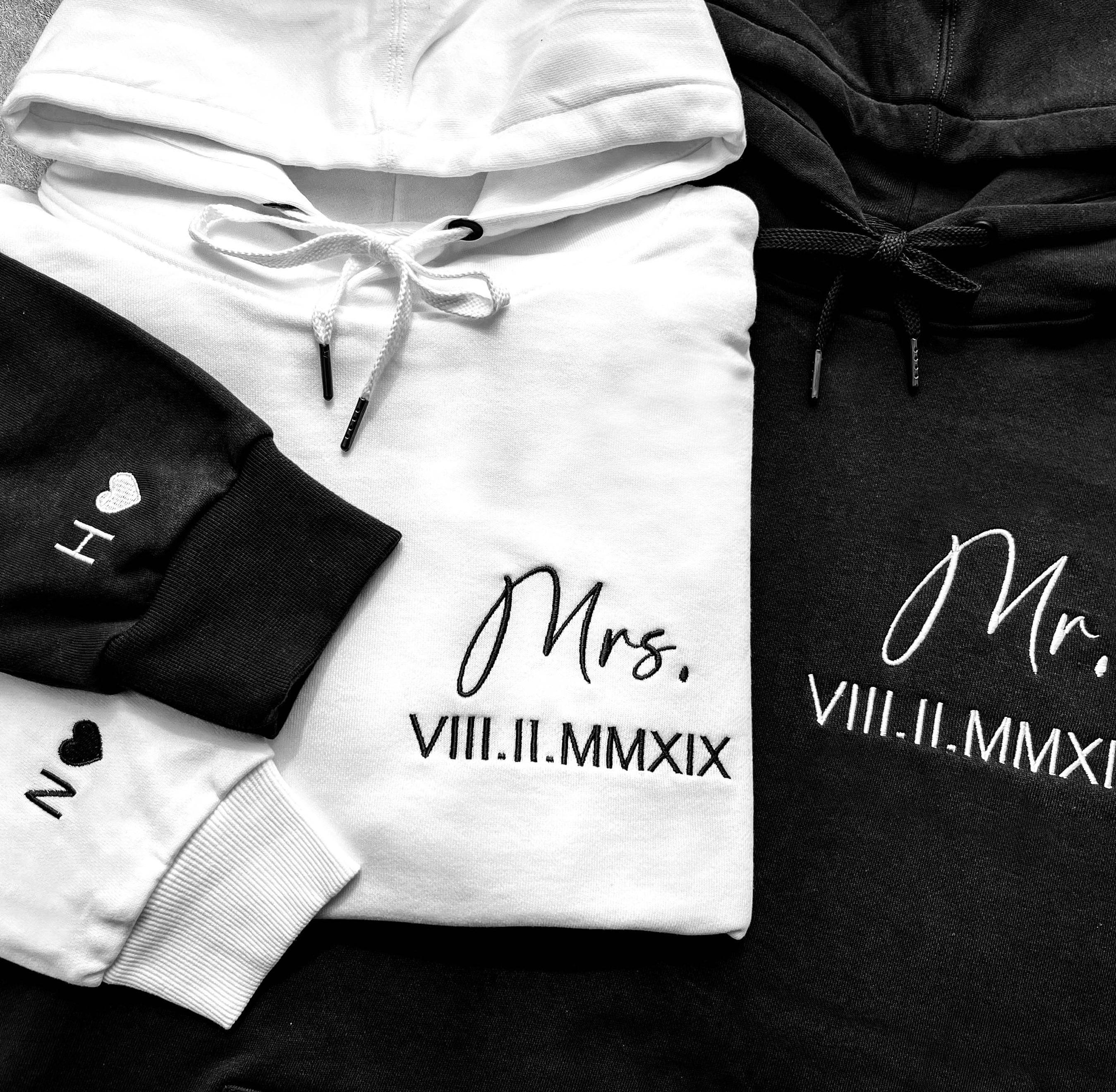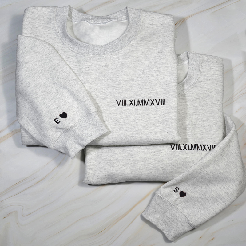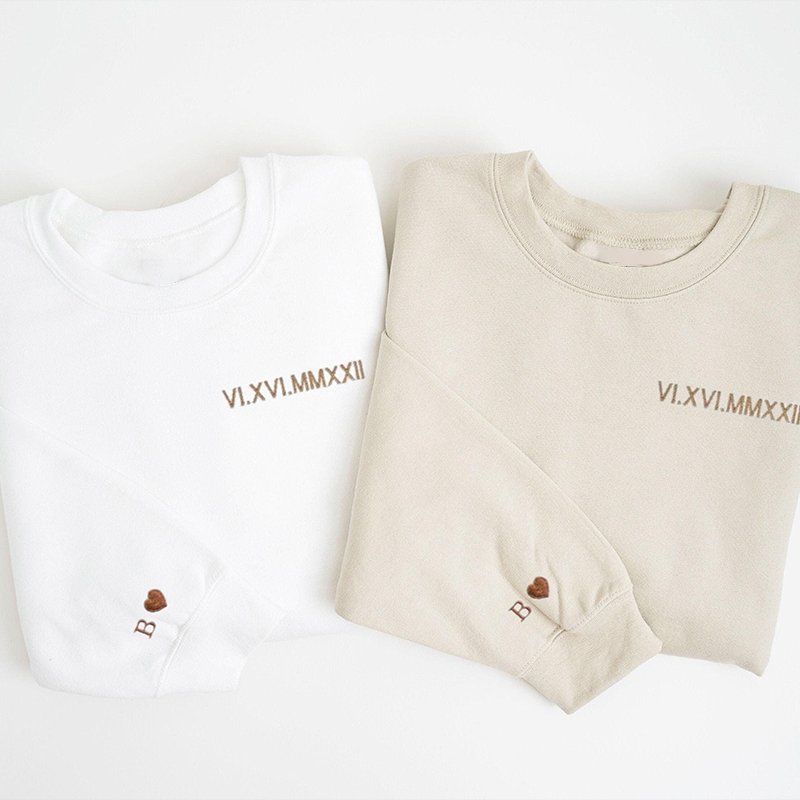 Embroidered Couple Crewneck Sweatshirt gift, Roman numerals embroidered on the neckline, Valentine's Day Gifts, Anniversary gift