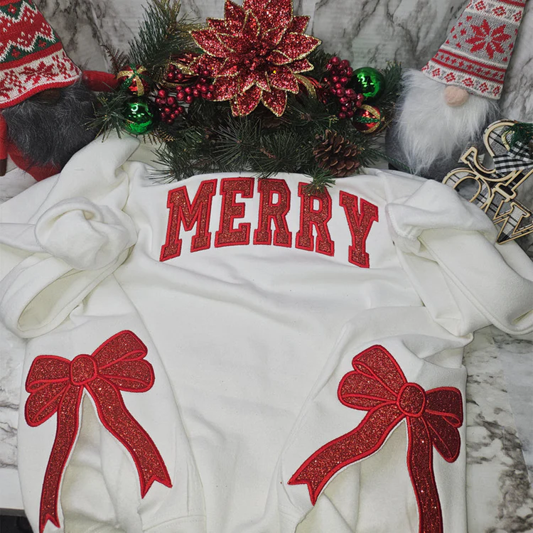 Personalized Green/Red Merry Christmas Bow Side Sweatshirt