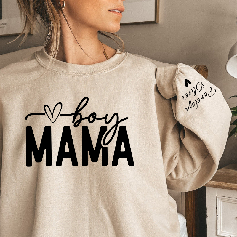 Boy Mama-Custom Mama Sweatshirt with Name Design On Sleeve