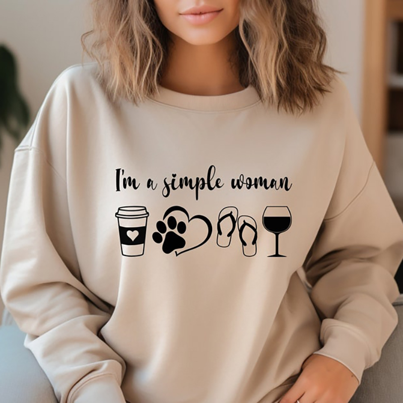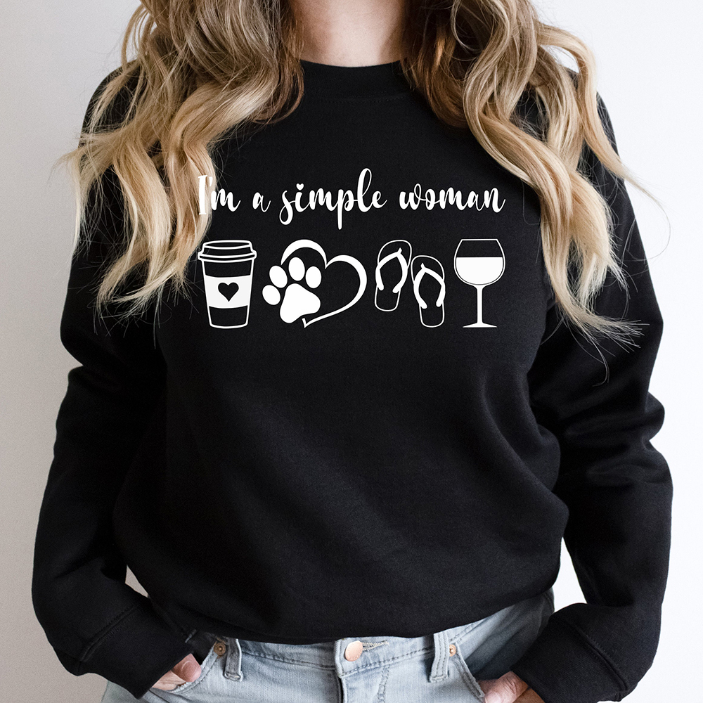 I'm a Simple Woman ultrasoft Sweatshirt, Coffee Sweatshirt, Wine Sweatshirt, Dog Sweatshirt. Sweet home
