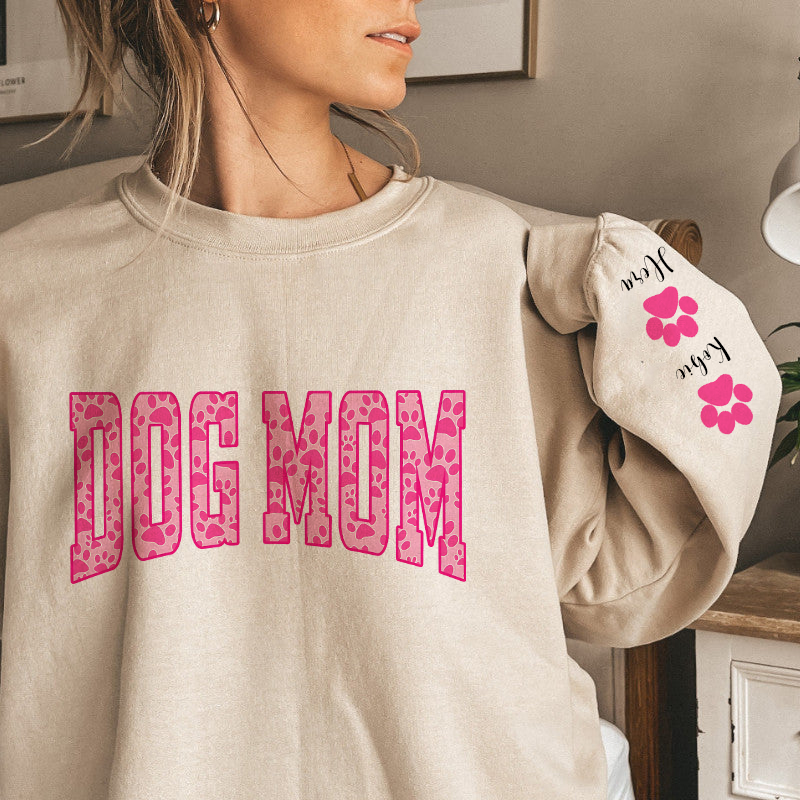Custom Dog Mom with paw Sweatshirt Dog Lover Gift Dog Gift for Women Christmas