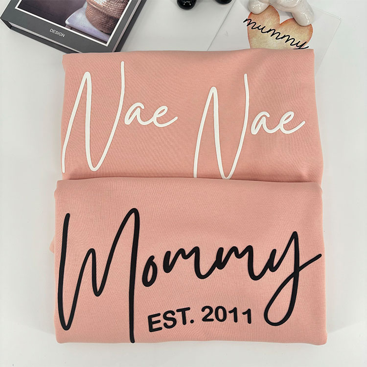 Personalized Puff Print Mama Sweatshirt With Kid Names On Sleeve