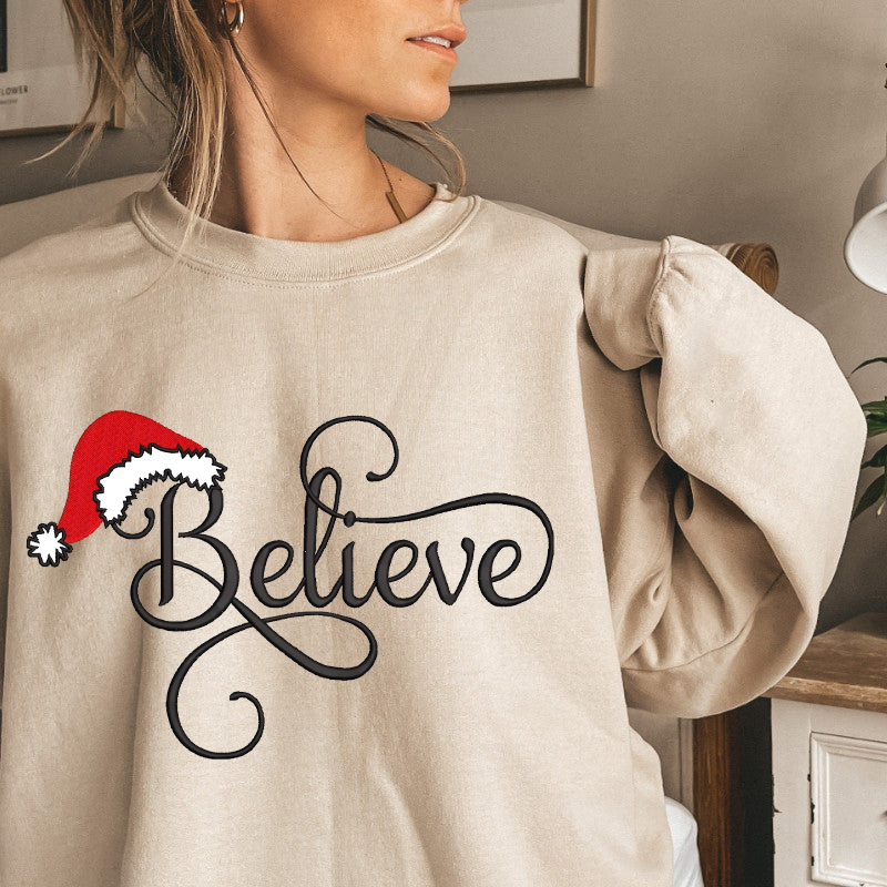 Believe Christmas Embroidered T-Shirt/Sweatshirt Holiday Christmas Day Gift