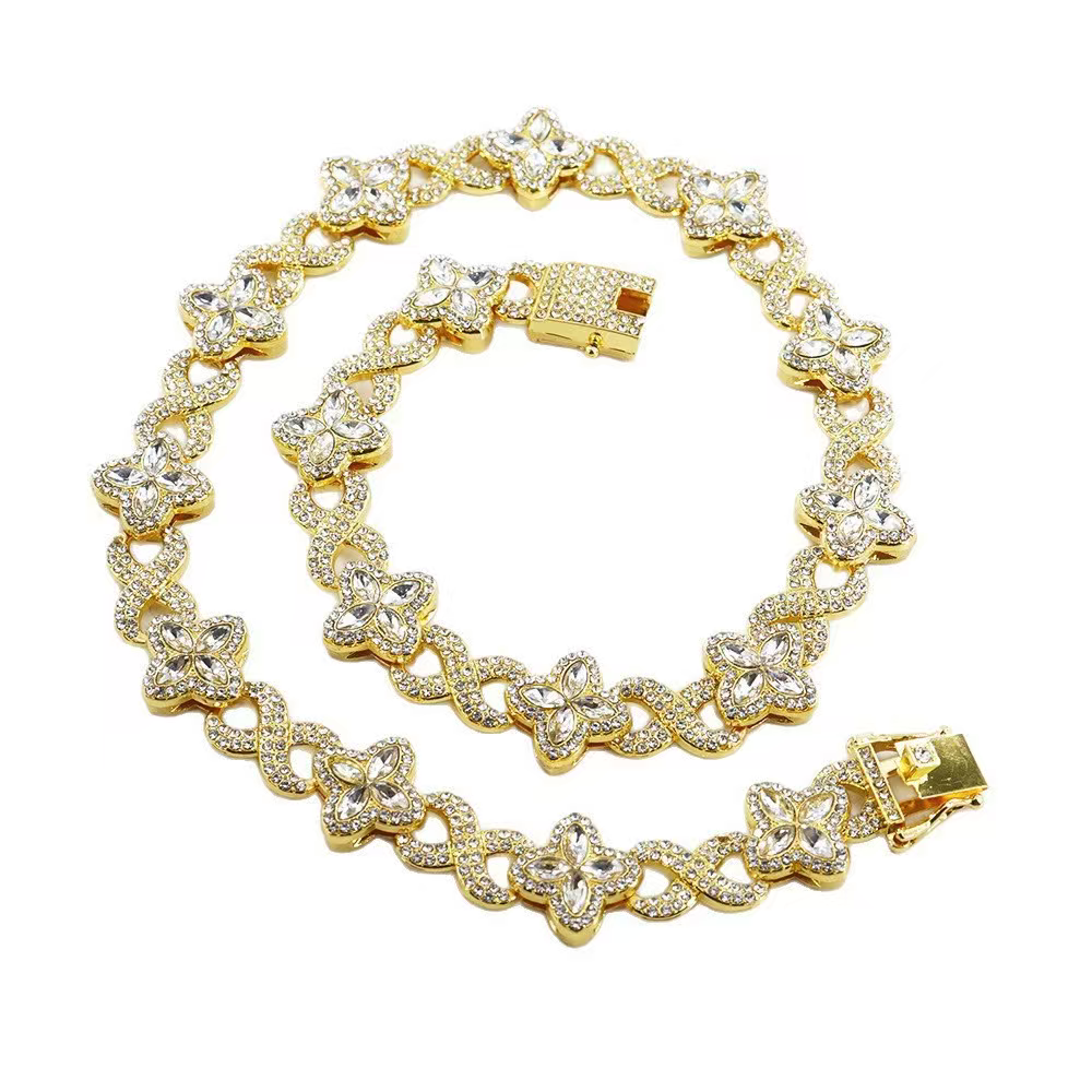 • Hip hop Clover 8-Word Cuban Chain Cross border Jewelry Men's Necklace Trendy Versatile Zircon Bracelet