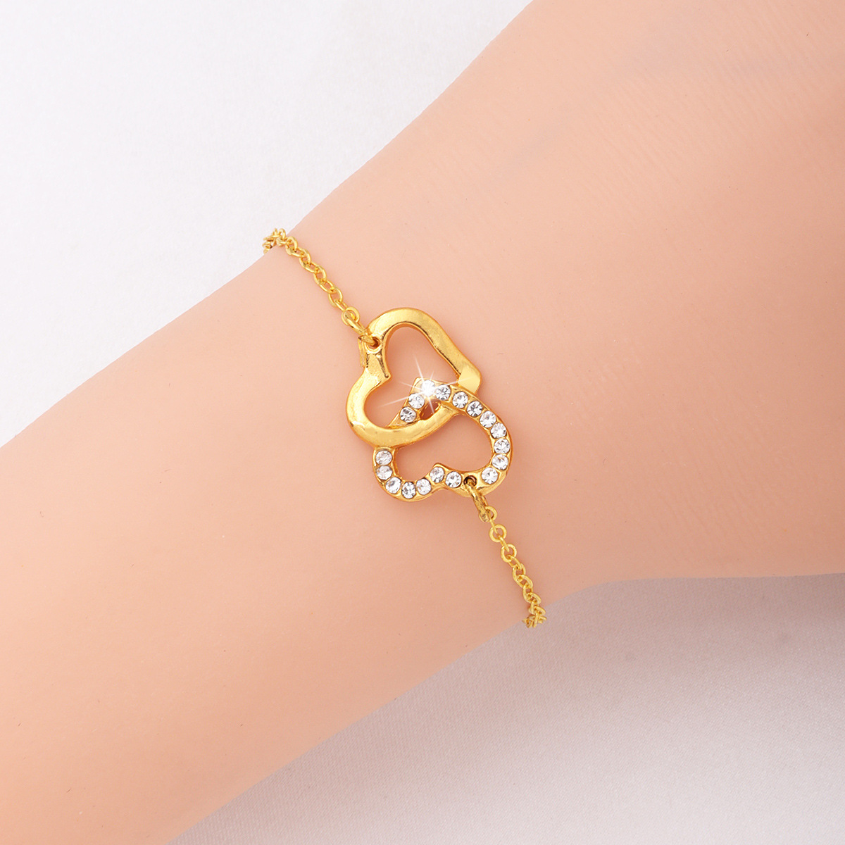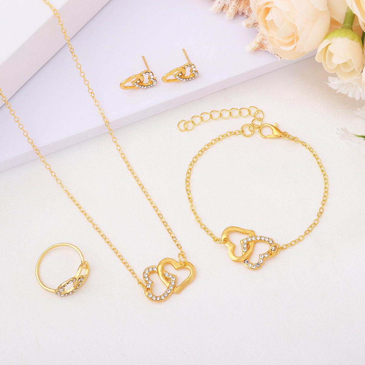 Minimally designed women's versatile double heart jewelry necklace bracelet earrings bracelet pendant four piece set