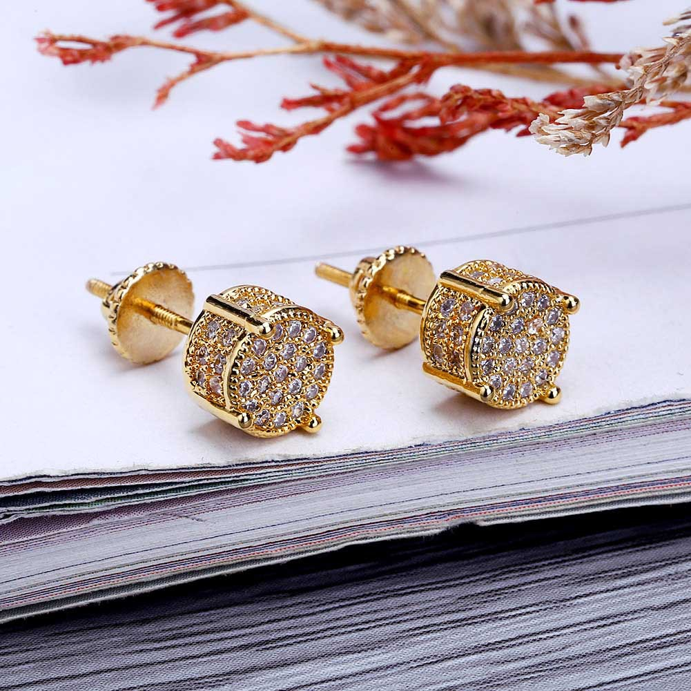 European and American hip-hop earrings micro inlaid with zircon gold plated round earrings for men and women