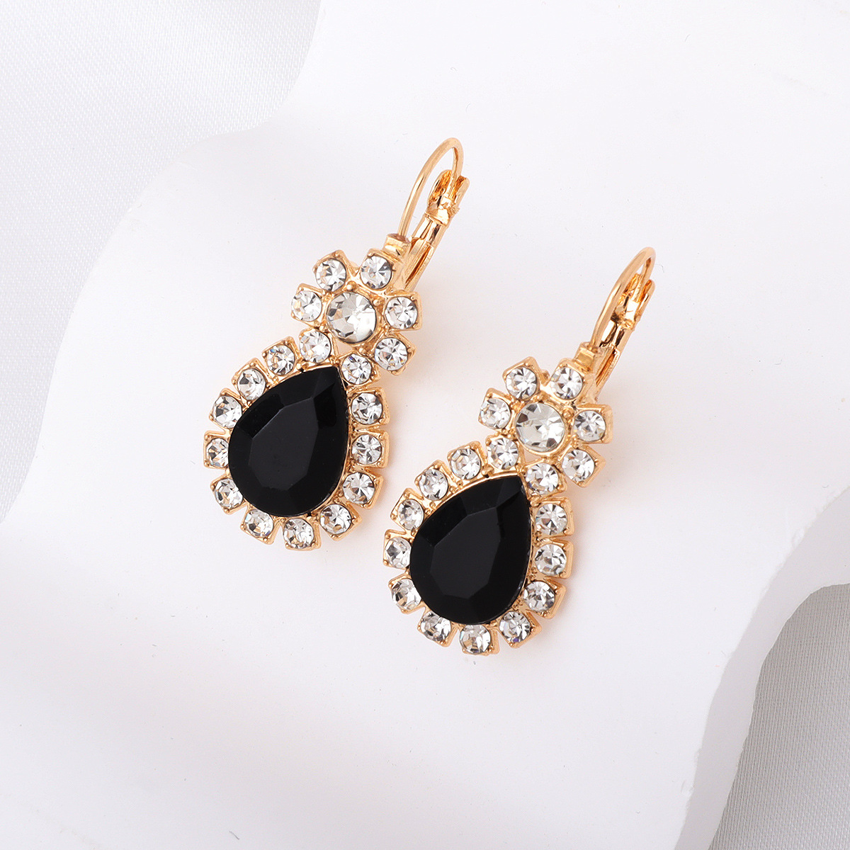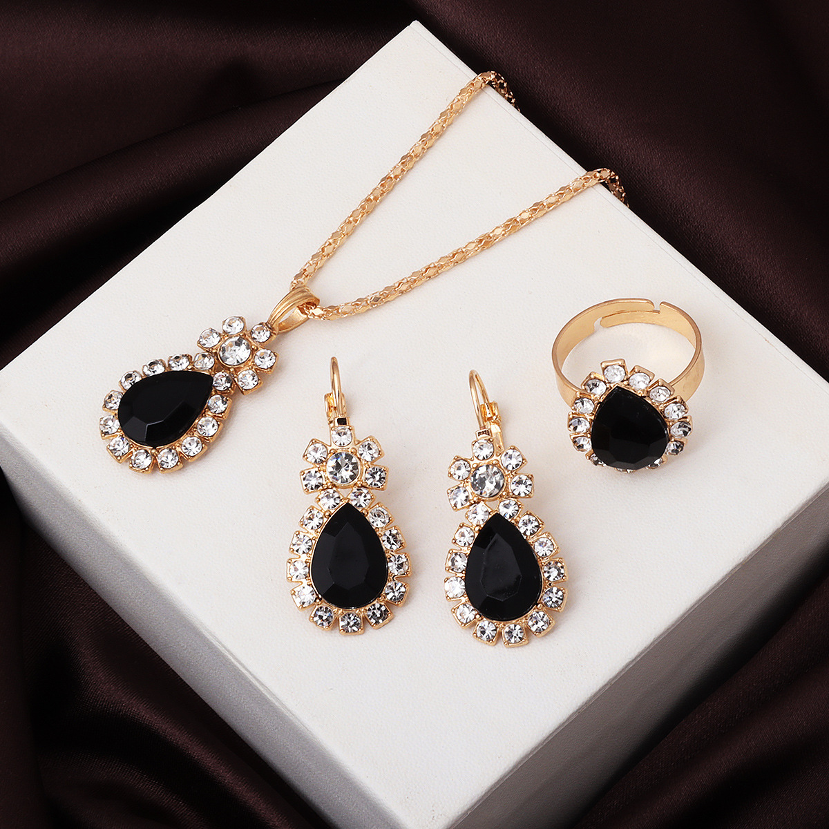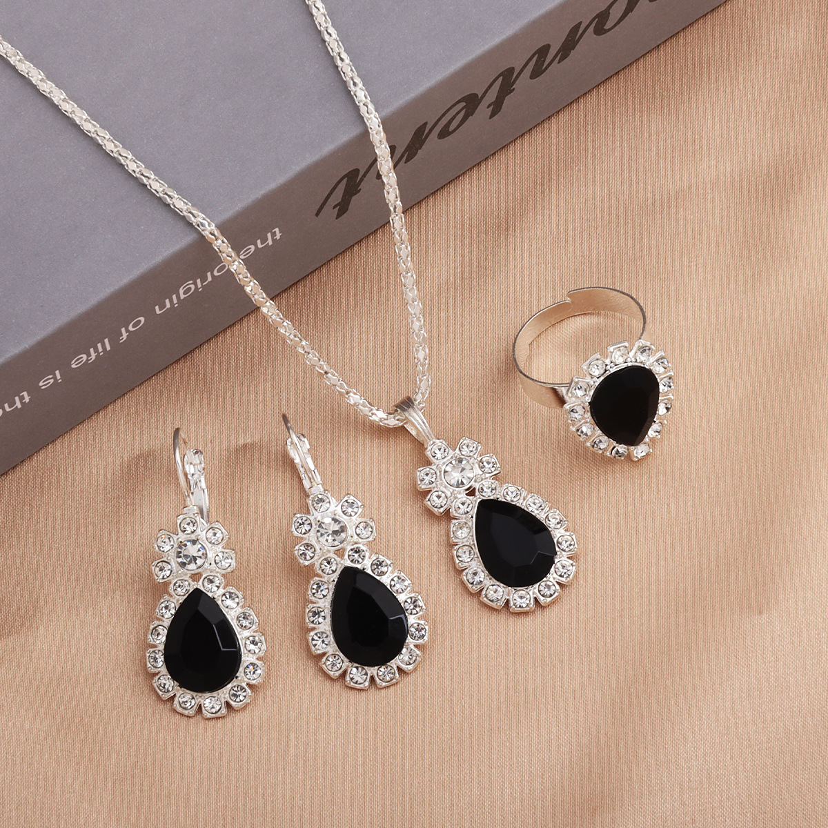 Hot selling Water Drop Black Chain Alloy Set Crystal Necklace Earrings Ring Jewelry