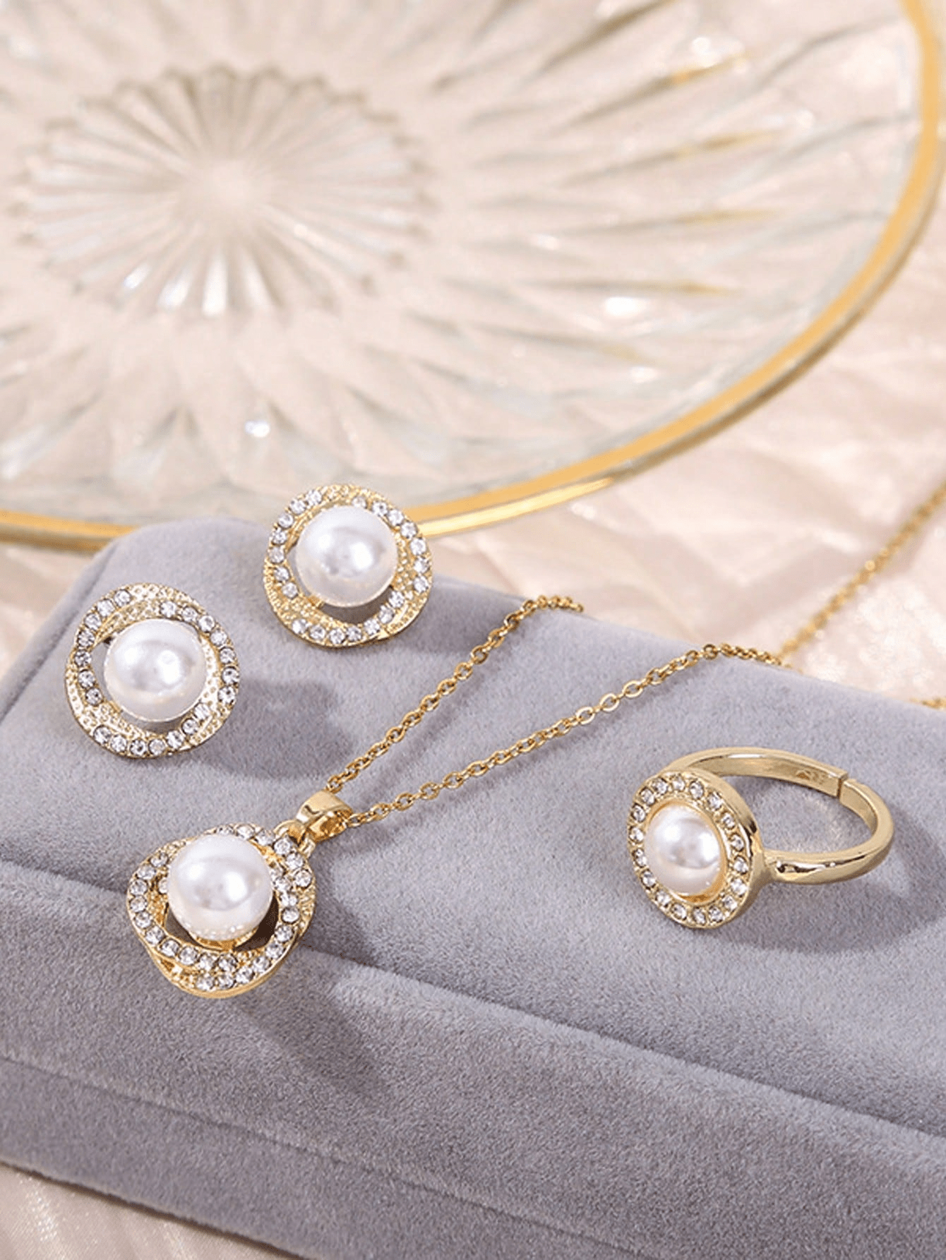 • Pearl jewelry set, necklace, feminine temperament, high-end feel, light luxury, summer versatile, geometric diamond inlaid accessories