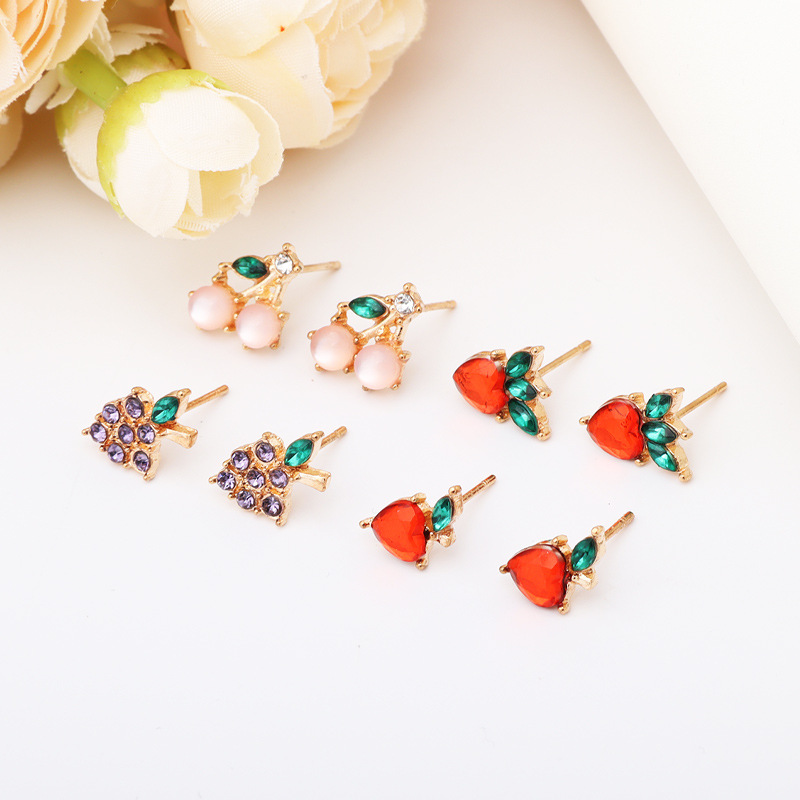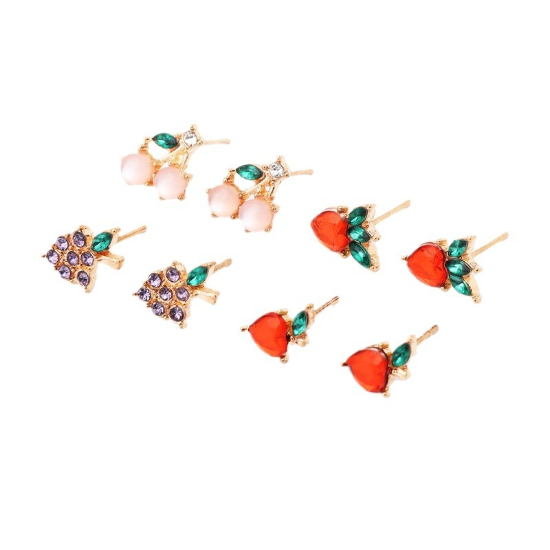 DIY Jewelry Accessories Color Preserved Electroplating Cute Apple Litchi Fruit Mini Necklace Earrings Earrings 4-pair Set