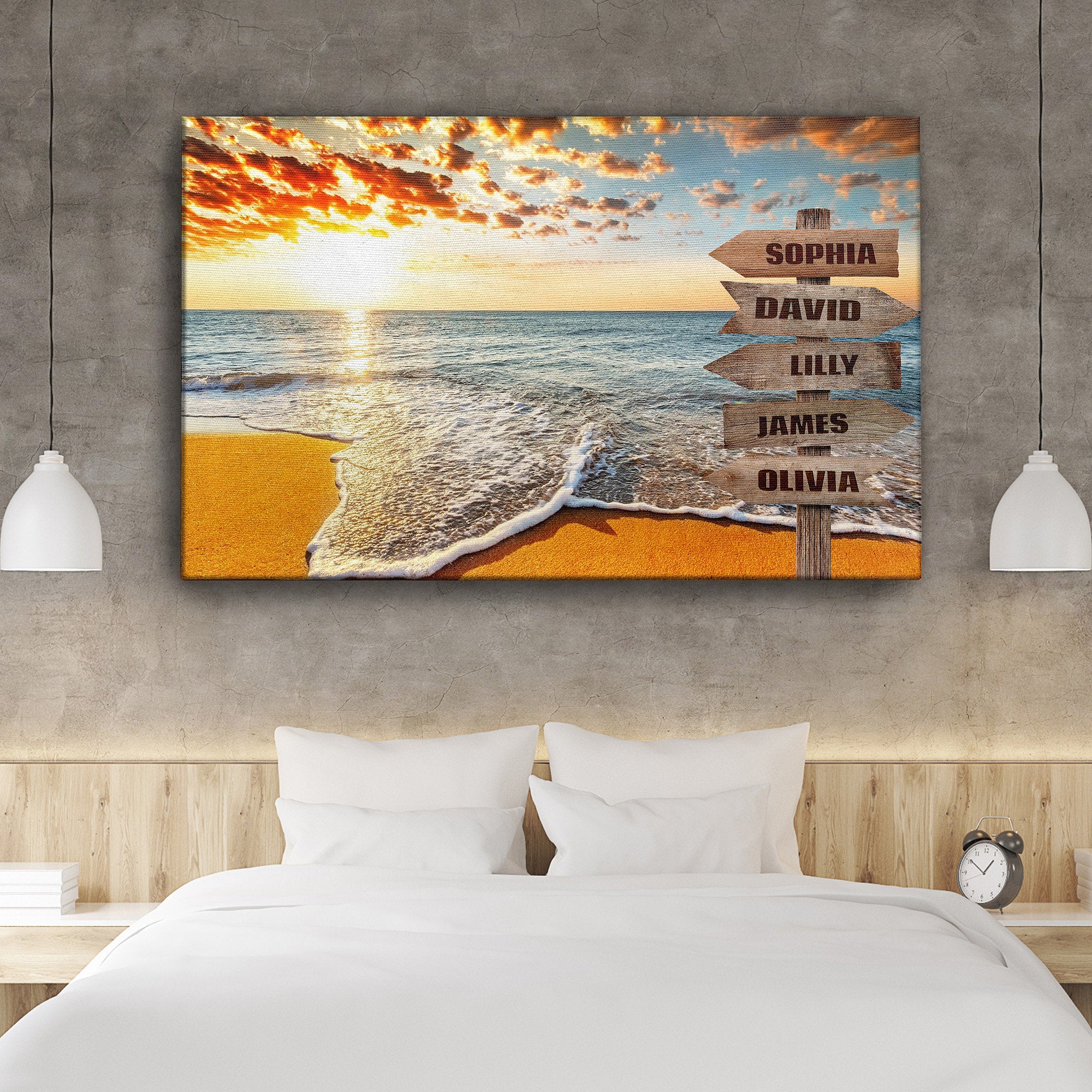 • Beach Sunrise Customized Canvas For Father's day, Family Wall Décor, Gift Ideas For Anniversary,Birthday, Father's day,Mother's day, Street Sign Canvas, Personalized Canvas